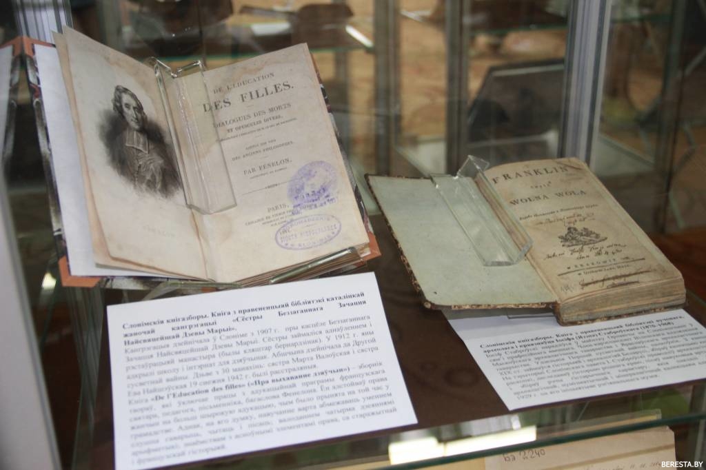 Сярод найбольш каштоўных эксапанатаў – выданне друкарні Міхаіла Казіміра Агінскага 1778 года “Кніжка для дзяцей, або ўяўленне пра рэчы, якія дзеці павінны вывучаць”, твор аб Жыровіцкім абразе Маці Божай гісторыка Ігната Кульчынскага 1732 года, асобнікі з уладальніцкімі пазнакамі бібліятэк каталіцкай абшчыны “Аб’яднанне бездакорных сёстраў у Слоніме” і краязнаўцы Язэпа Стаброўскага. Таксама сярод найцікавейшых рарытэтных матэрыялаў варта адзначыць шэраг экспанатаў, прысвечаных дзеячу беларускай культуры, бібліятэкару Яўгену Хлябцэвічу, які нарадзіўся на Слонімшчыне і з дня нараджэння якога сёлета спаўняецца 135 год.