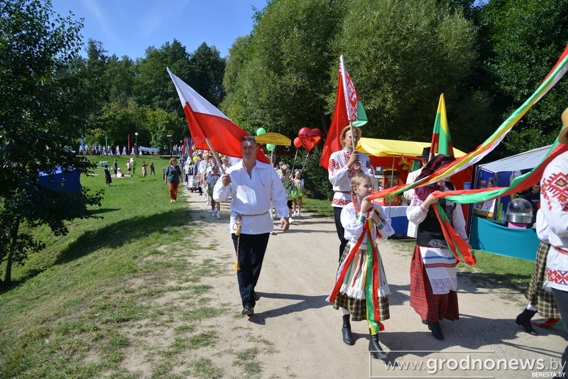 Программа праздника более чем насыщенная. На протяжении всего дня площадка фестиваля будет окутана ореолом музыкальности. Прямо сейчас на сцене главного праздника выступают не похожие друг на друга коллективы из стран-участниц – Беларуси, Польши, Литвы. Обязательно порадуют концертом и фольклорные коллективы Гродненского района, ведь любителей самобытных народных мотивов здесь собралось немало. Минорно-мажорную музыкальную эстафету на дополнительной сценической площадке подхватит неповторимый баян-баттл. За звание лучшего музыканта-баяниста сможет побороться каждый желающий. Здесь же «на других посмотреть и себя показать» участники и гости праздника смогут во время проведения мастер-класса по «побытавым» танцам. Чтоб перевести дыхание, следует отправиться на улицу мастеров, где обязанности своеобразных «аниматоров» на себя возложат ремесленники.