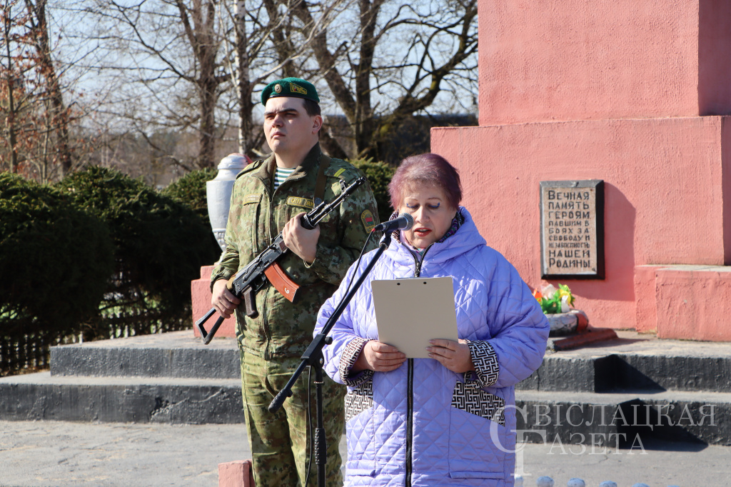 – Одной из самых трагических страниц в истории белорусского народа является Великая Отечественная война, – подчеркнул Евгений Кизелевич. – За три года оккупации гитлеровскими войсками и их пособниками проводились в жизнь планы по уничтожению населения Беларуси. Сюда входило создание невыносимых условий для жизни, создание лагерей смерти, расстрелы граждан за любое неповиновение и оказание противодействия немецким солдатам. Как показывает история, Хатынь – это не единственная деревня, которая была уничтожена вместе с мирным населением. За время расследования уголовного дела о геноциде белорусского народа подтверждено уничтожение 12890 населенных пунктов, из них 290 повторили героическое участь Хатыни. На территории Свислочского района за годы оккупации полностью или частично было уничтожено 29 населенных пунктов, в том числе проводились убийства мирного населения. Эти факты являются не только цифрами. Они показывают всю суть агрессорского режима, направленного на уничтожение и очищение белорусской земли. Вместе с тем, благодаря усилиям белорусского народа, удалось победить не только немецко-фашистскую Германию, но и в дальнейшем восстановить и развить Беларусь. Поэтому надо помнить происходящее события, чтобы они больше никогда не повторились. Такие мероприятия, как сегодня, позволяют передать память молодому поколению и показать, что в годы войны белорусским народом было проявлено неимоверное мужество и героизм.