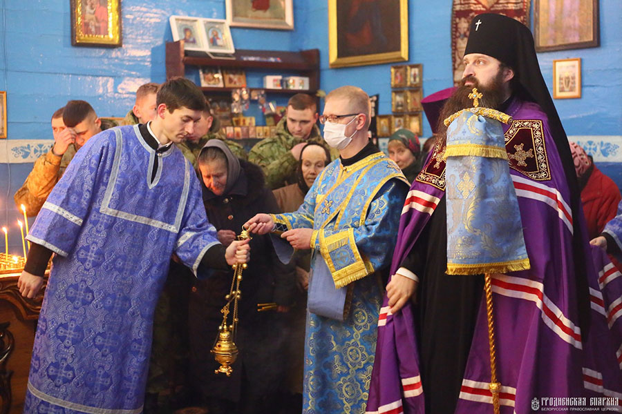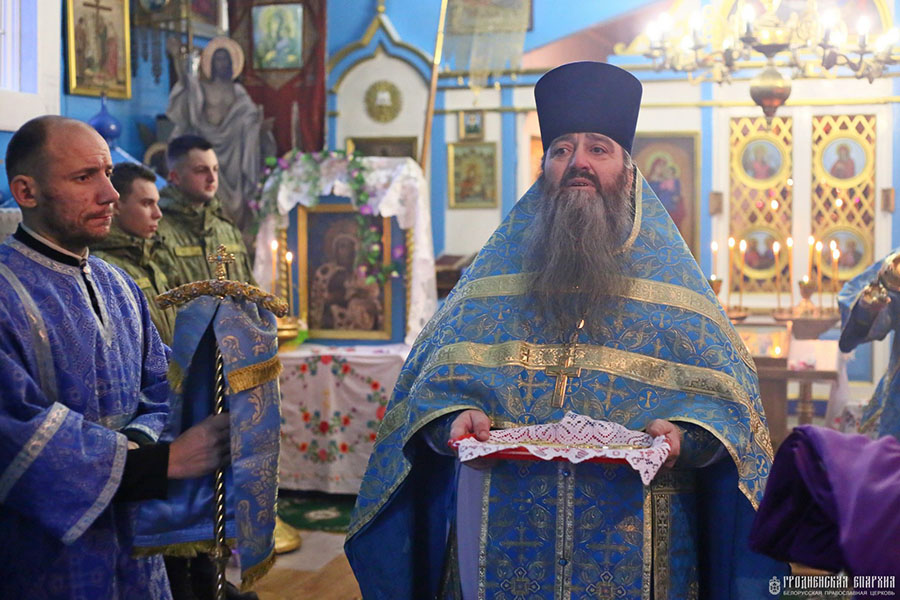 Его Высокопреосвященству сослужили Секретарь Гродненской епархии протоиерей Николай Лабынько и настоятель храма иерей Петр Ровнейко. Диаконский чин возглавил протодиакон Дмитрий Шепелев.