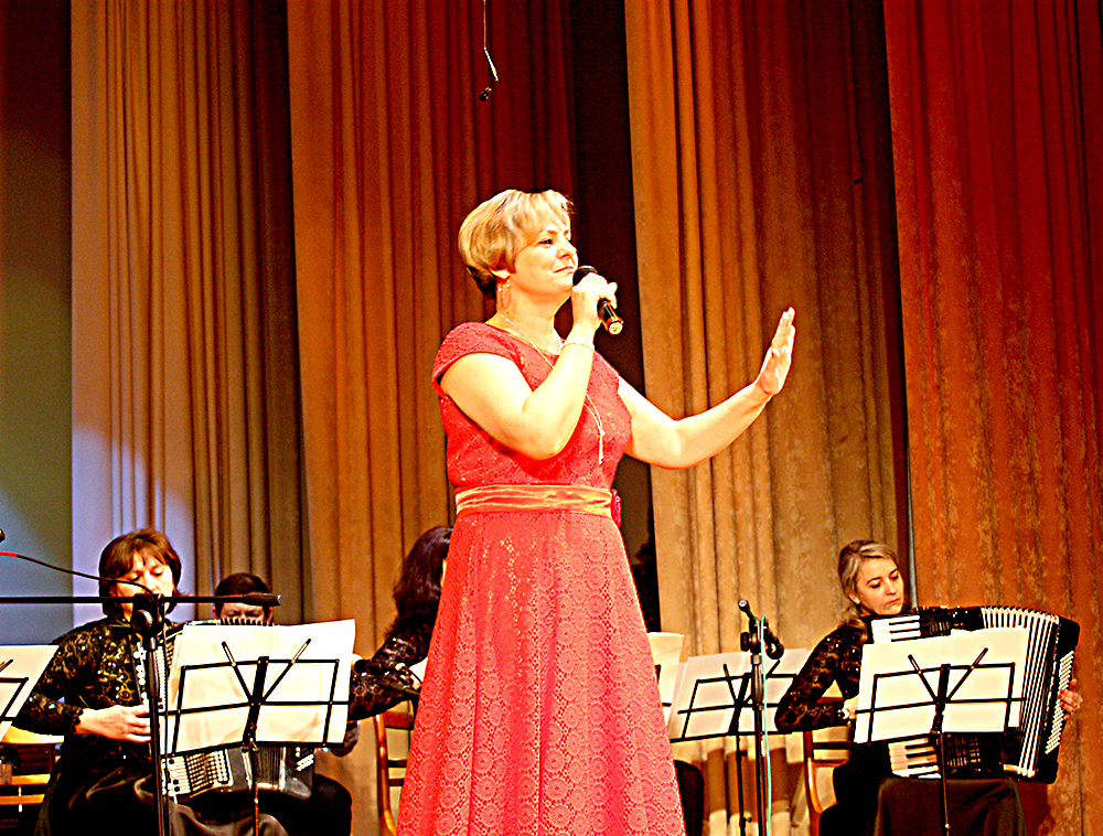 За Благодарственными письмами председателя районного Совета депутатов на сцену поднимались социальный работник центра соцобслуживания Любовь Трешникова (на фото) и старшая медсестра Добровольского дома-интерната Галина Лещук.