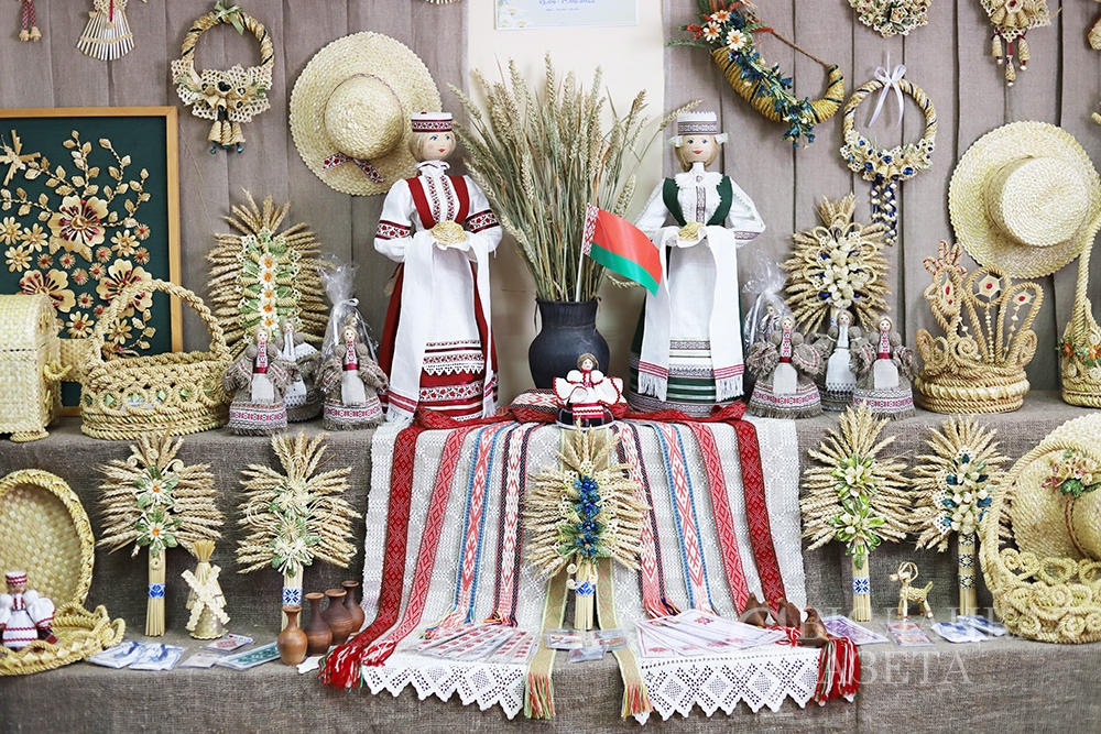 На выставачных паліцах – работы трох майстроў: Яўген Мацяшук прадстаўляе ганчарства, Жанна Сыраежка – ткацтва, Ірына Фунт – саломапляценне. Гэты скарб рукатворны будзе экспанавацца да 17 верасня.