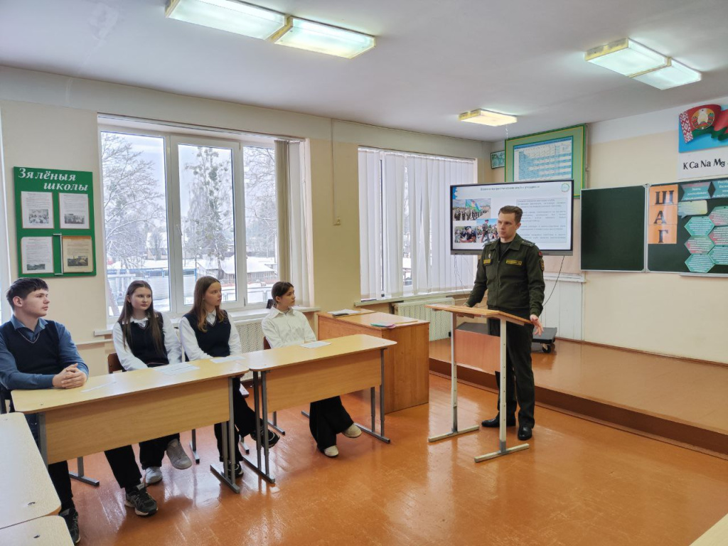 Перед школьниками выступил заместитель начальника 1-го радиотехнического центра по идеологической работе, капитан Константин Прасолович. Он посетил среднюю школу №2 города Свислочь, Новодворскую и Хоневичскую средние школы.