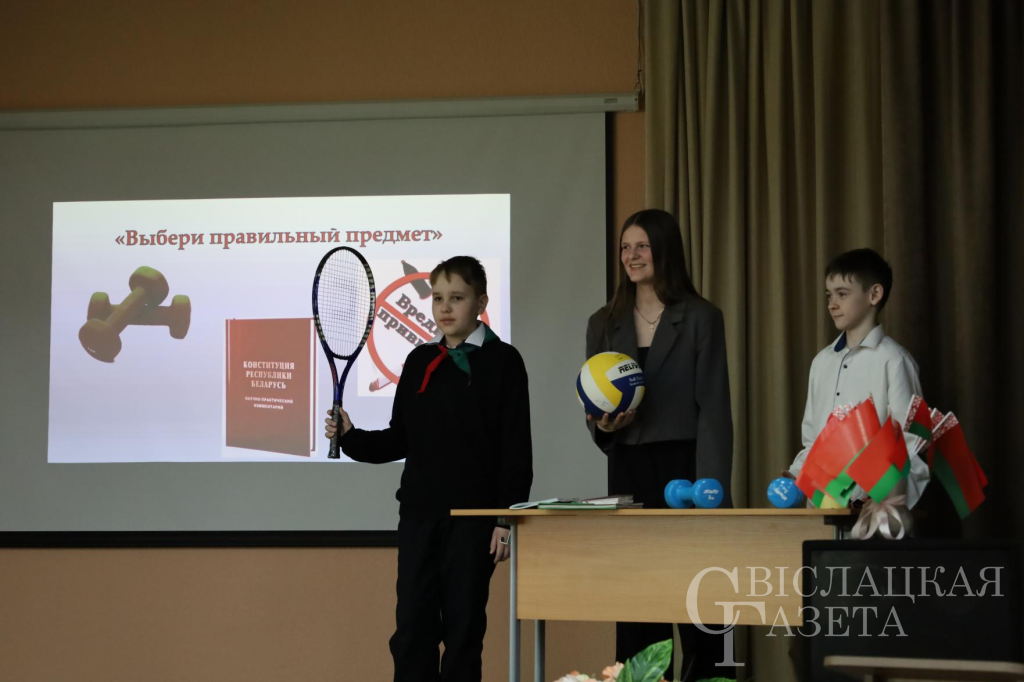 В актовом зале СШ №2 имени Н. П. Массонова состоялся урок «Твое здоровье – твоя ответственность», посвященный межгосударственной акции «Неделя здоровья и прав человека». Представители правоохранительных органов и здравоохранения рассказали ребятам про их гражданские права и основы здорового образа жизни. Урок прошел в интерактивном формате с использованием игры и викторины, в которых учащиеся активно принимали участие.