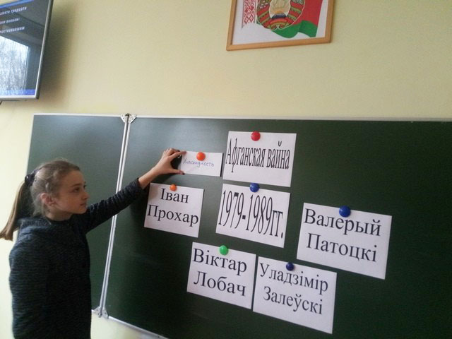 Усе навучэнцы пабывалі ў школьным музеі на экскурсіі “Афганская памяць і боль”, дзе таксама размясцілася выстава малюнкаў малодшых школьнікаў на тэму “Вайна і Перамога вачамі дзяцей”.