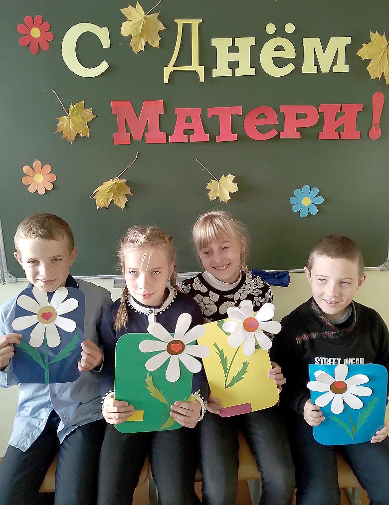 В школе стало уже доброй традицией в этот день поздравлять и дарить подарки дорогим мамам. В этот раз учащиеся 3 класса изготовили яркие открытки с секретом: под каждым лепестком ромашки спрятали теплые слова о своих мамах. Ведь для каждого из них она самая любимая, нежная, добрая, умная и заботливая.