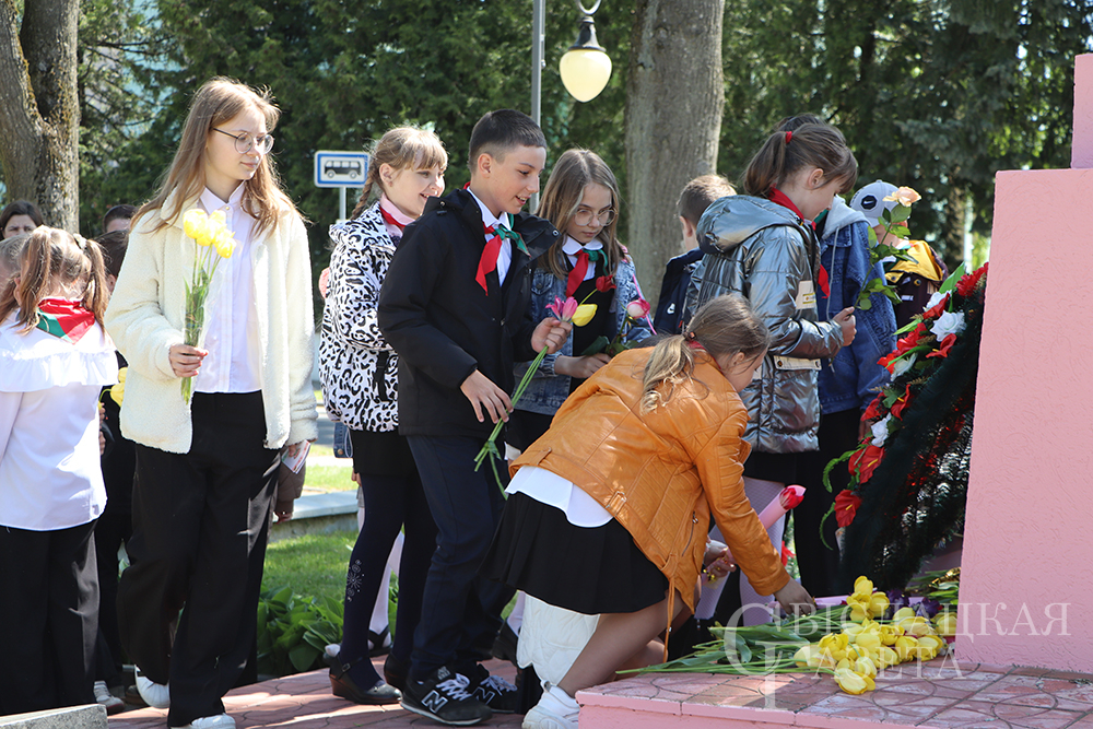 Традиционно в пионерской дружине имени Николая Павловича Массонова в канун празднования одной из самых главных и памятных дат, ставшей для нас символом национальной гордости и памяти, – Дня Победы прошло принятие школьников в пионеры. Мероприятие состоялось у памятника погибшим воинам в Свислочи.