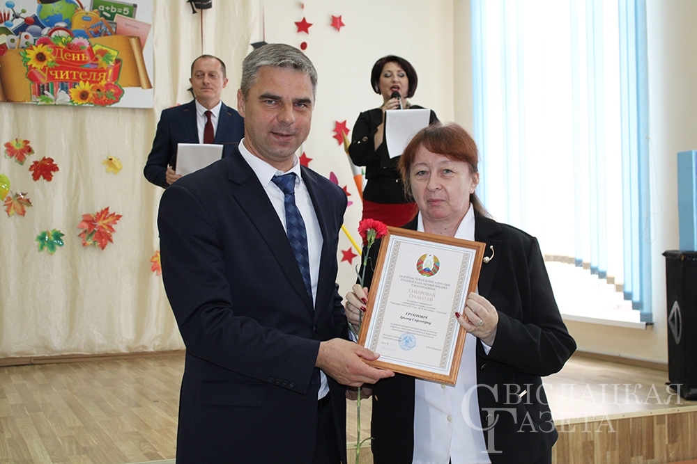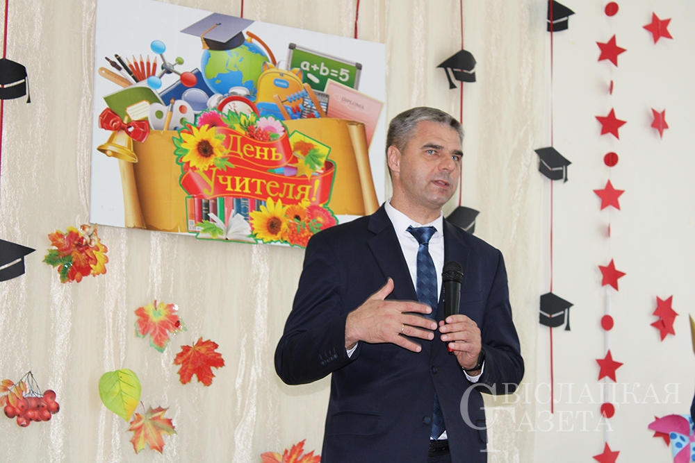 – Уважаемые педагоги, от себя лично, от имени районного исполнительного комитета, районного Совета депутатов поздравляю вас с профессиональным праздником – Днем учителя. В первую очередь выражаю слова огромной благодарности вам, ветераны труда. Для ваших последователей вы являетесь ярким примером, источником знаний и оптимизма, вы давали правильные жизненные уроки и мудрые советы. Мы учились у вас, перенимали ваш богатейший опыт. Конечно, сегодня нельзя не сказать о нынешнем педагогическом коллективе Свислоччины, который в череде различных событий остается сильным, сплоченным и активным. Педагоги великолепно справляются с поставленными задачами, которые на них возложены. Вы, педагоги, – предмет гордости нашего района. Спасибо вам за уроки мудрости, за то, что находите в себе силы идти вперед и развиваться.