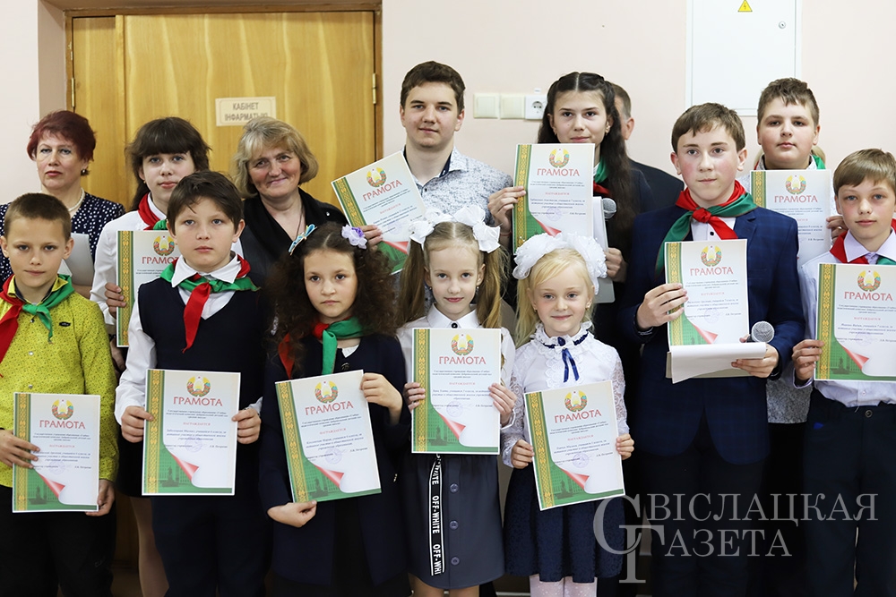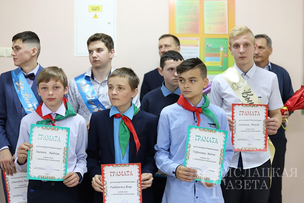 Ученикам, которые в учебном году достигли успехов в учебе, спорте, культурной и общественной жизни учреждении образования и района, были примером в поведении, вручили грамоты. В ряды ОО «БРСМ» вступили 6 школьников.