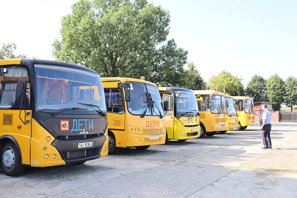 Для организации подвоза детей задействовано одиннадцать автобусов и один микроавтобус. Все они находятся на балансе отдела образования райисполкома. Яркие желтые и оранжевые автобусы с надписью «Дети» выстроились на площадке в ожидании проверки.