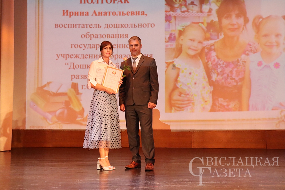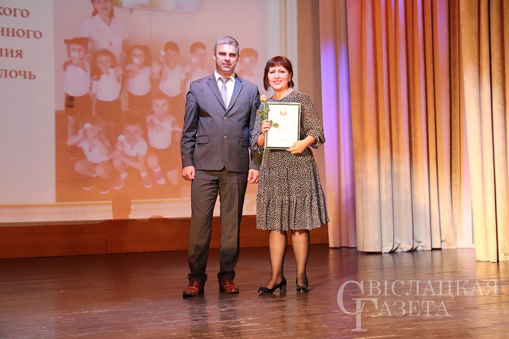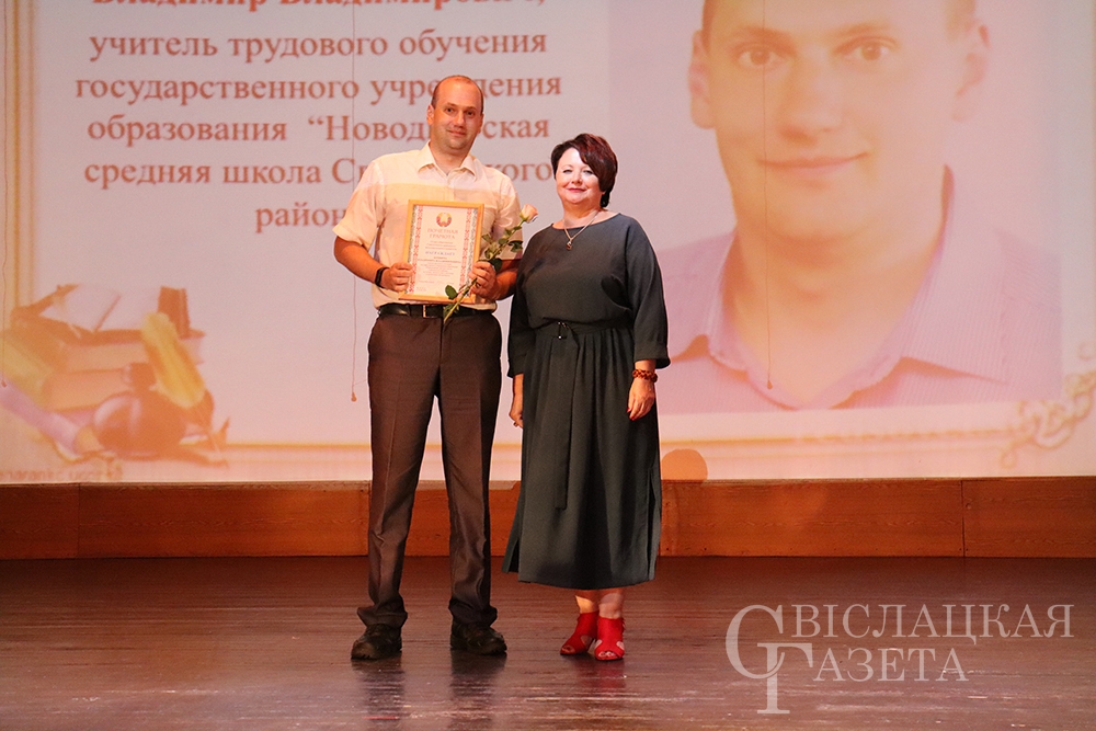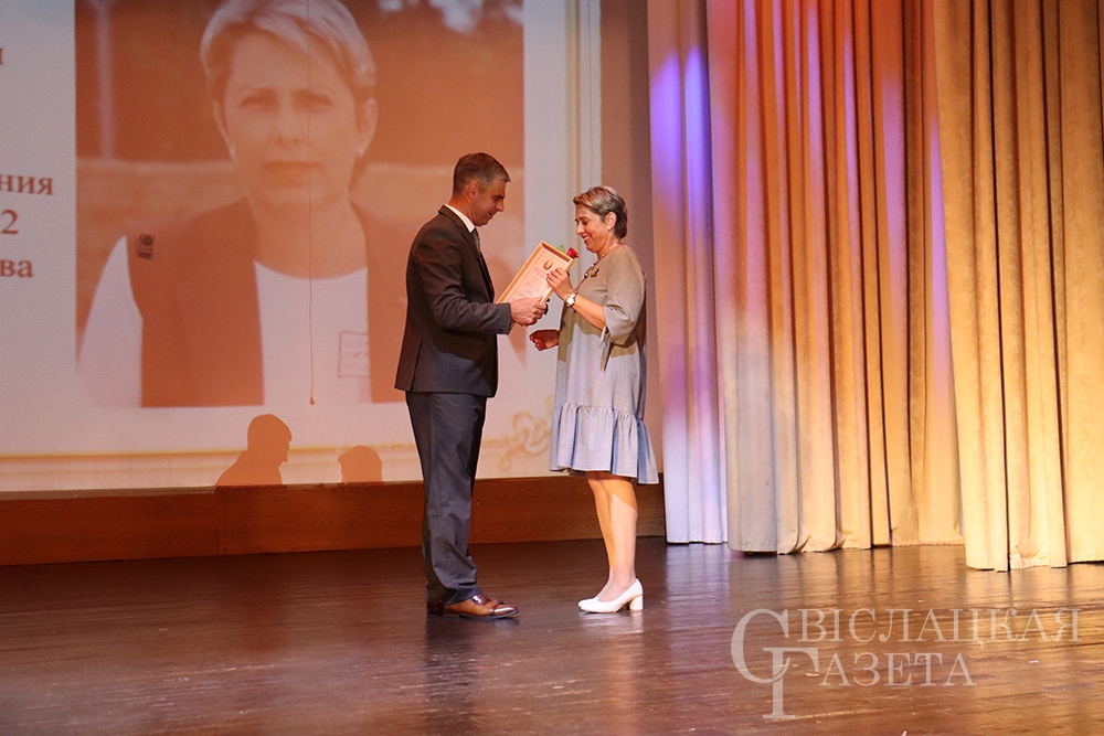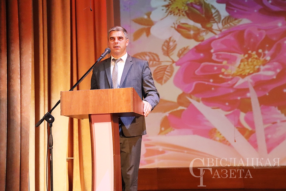 – Уважаемая Людмила Романовна, педагоги Свислоччины, – обратился к собравшимся Александр Версоцкий. – Я хотел бы поздравить вас и высказать самые теплые, искренние слова благодарности за эффективную работу в предыдущем учебном году. Приятно отметить тот факт, что одна из главных целей, которые преследует учебно-воспитательная работа – это достойно подготовить выпускника школы к поступлению, осознанному выбору дальнейшего жизненного пути. 72,5% выпускников поступили в высшие учебные заведения – это заслуживает слов самой великой похвалы. Огромное спасибо, уважаемые педагоги, что вам удалось это сделать. С наступающим праздником! Надеюсь, новый учебный год будет не менее результативным.