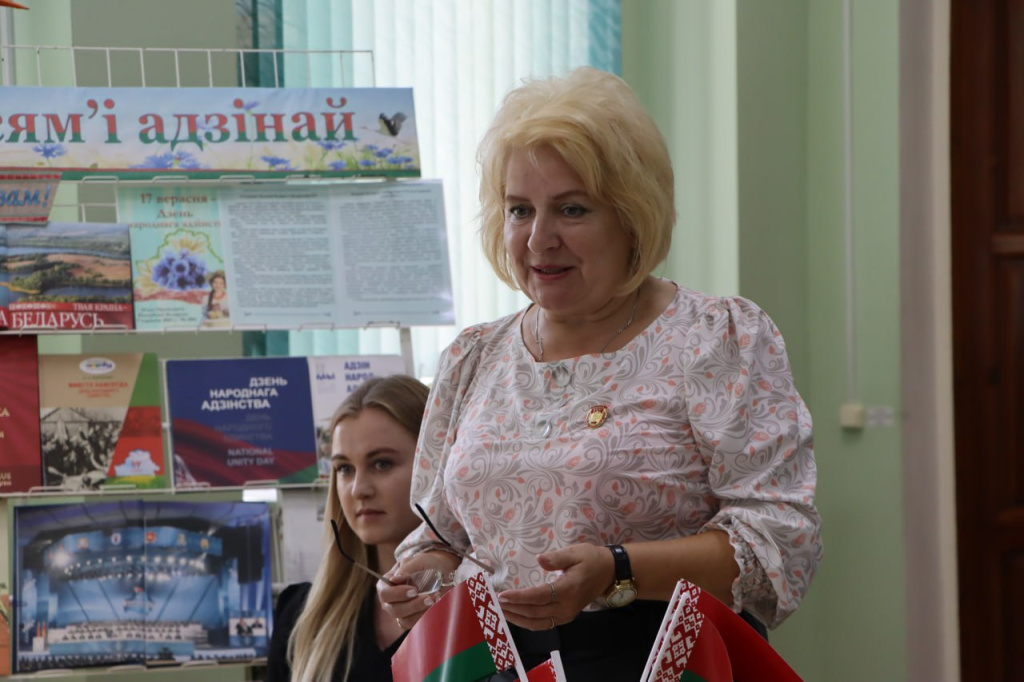 – Сегодня наша страна отмечает День народного единства. Праздник по праву является одним из главных, – сказала библиотекарь отдела маркетинга, социокультурной деятельности и методической работы районной библиотеки Мария Гуляй. – Выбор этой даты имеет историческое основание. Именно 17 сентября 1939 года стало началом воссоединения Западной и Восточной Беларуси, которые были разделены по условиям Рижского мирного договора в 1921 году.