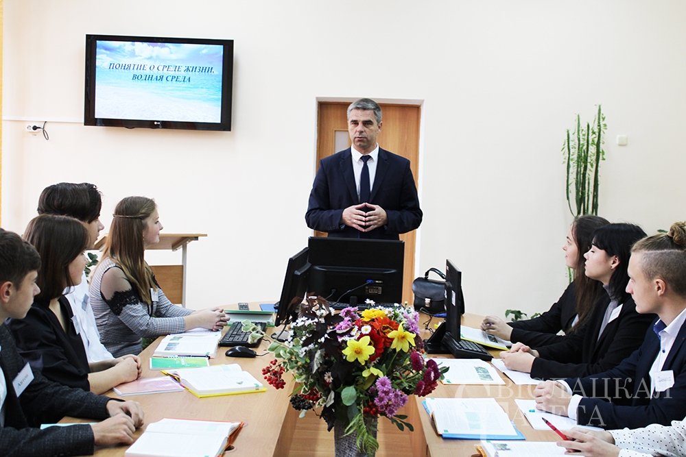 Сегодня, накануне профессионального праздника педагогов, Александр Людвигович решил вспомнить свою трудовую деятельность в школе и на некоторое время выступить в роли учителя. Самый что ни на есть настоящий урок биологии он провел в 11 классе гимназии № 1 им. К. Калиновского г. Свислочи. Между новым преподавателем и учащимися сразу был налажен конструктивный диалог.