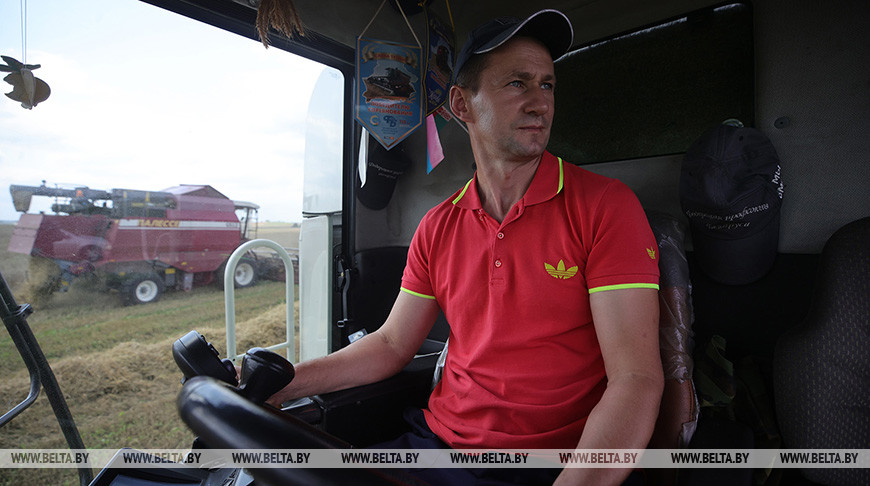 ОАО "Хоневичи" в Свислочском районе продолжает уборку зерновых. Хозяйство, которое находится на границе с Брестской областью, давно перешагнуло уборочный экватор уверенно двигается к финишу. На полях ОАО работает 9 единиц техники, 9 машин задействовано на отвозке зерна. Среди тех, кто традиционно присоединяется к уборке хлеба, Алексей Ламан. На протяжении 14 лет мужчина возвращается на малую родину из Гродно вместе с семьей, чтобы сменить пожарный автомобиль на комбайн. Экипаж получается семейным, Алексей помогает родному брату Андрею. Корреспонденты БЕЛТА познакомились с семьей Ламан.