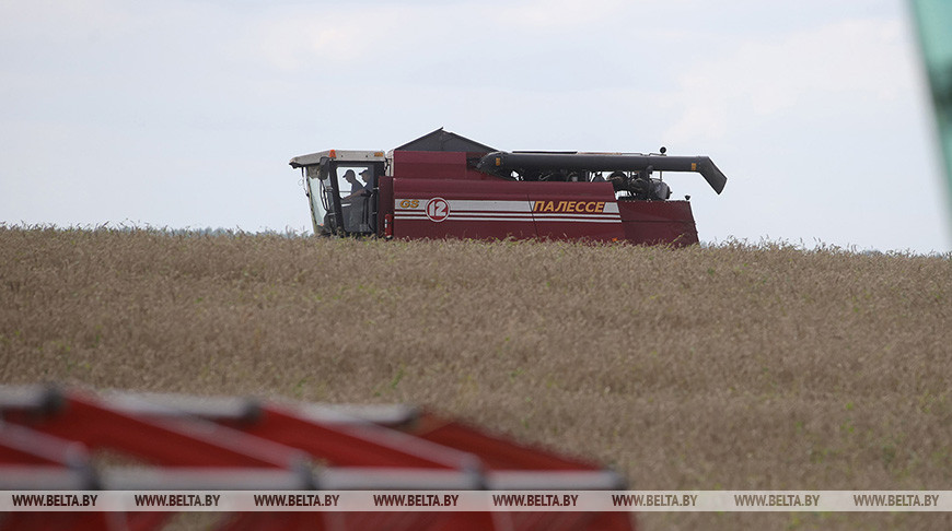 "Люди мотивированы и понимают свою задачу", - говорит о работниках директор ОАО "Хоневичи" Юрий Турок. Он добавляет, что всего в хозяйстве убрано порядка 80% площадей. "Валовой сбор - более 10 тыс. т. Сейчас убираем озимые пшеницу и рожь. Урожайность - 37,8 ц/га, это на 10 единиц больше в сравнении с прошлым годом. Планируем собрать больше на 30% урожая, чем в 2021-м", - отмечает Юрий Турок.