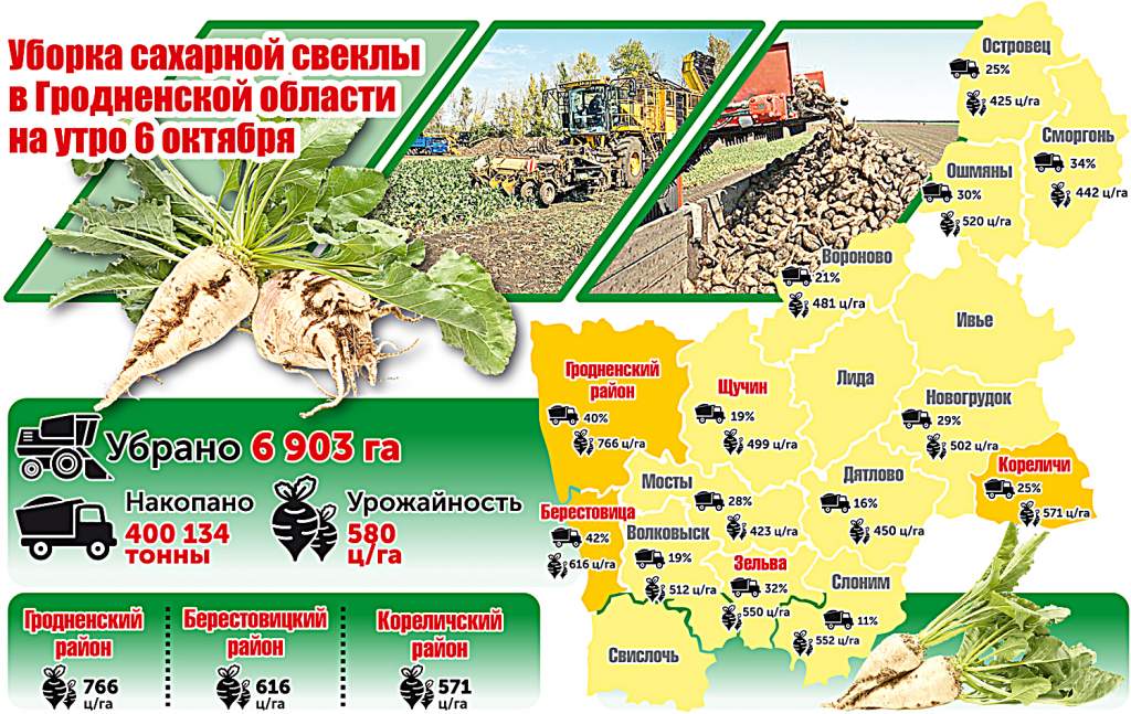 Уборка сахарной свеклы в Гродненской области на утро 6 октября (инфографика)