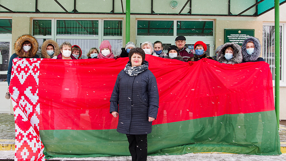 Делегата народного форума старшую медсестру УЗ "Свислочская ЦРБ" Инну Иосифовну Седляр поздравляют коллеги.