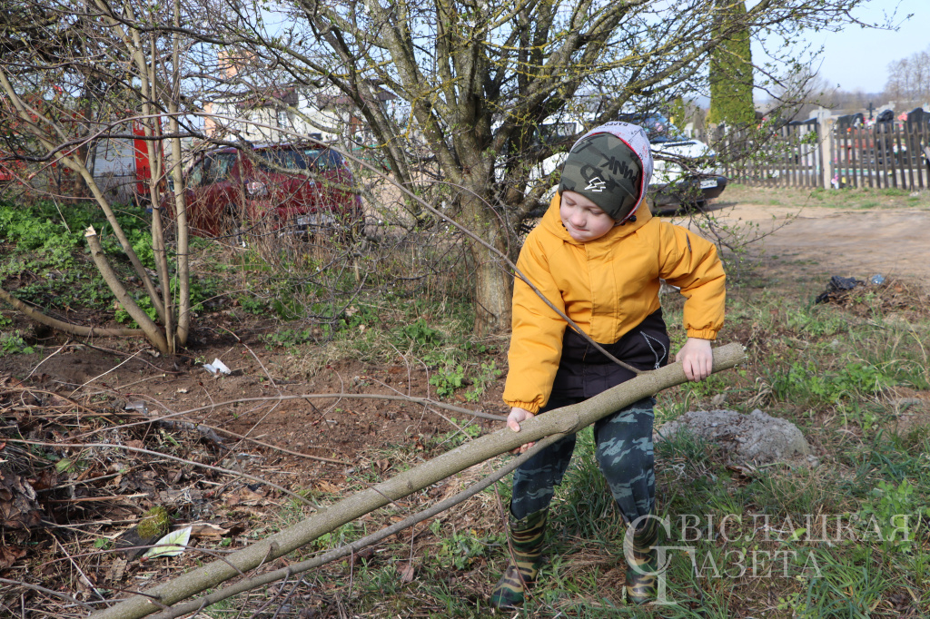 Активное участие в субботнике принял председатель райисполкома Андрей Грицкевич. Да не только сам, но и со своим шестилетним сыном Артемом, которого с малолетства приучает к труду.
