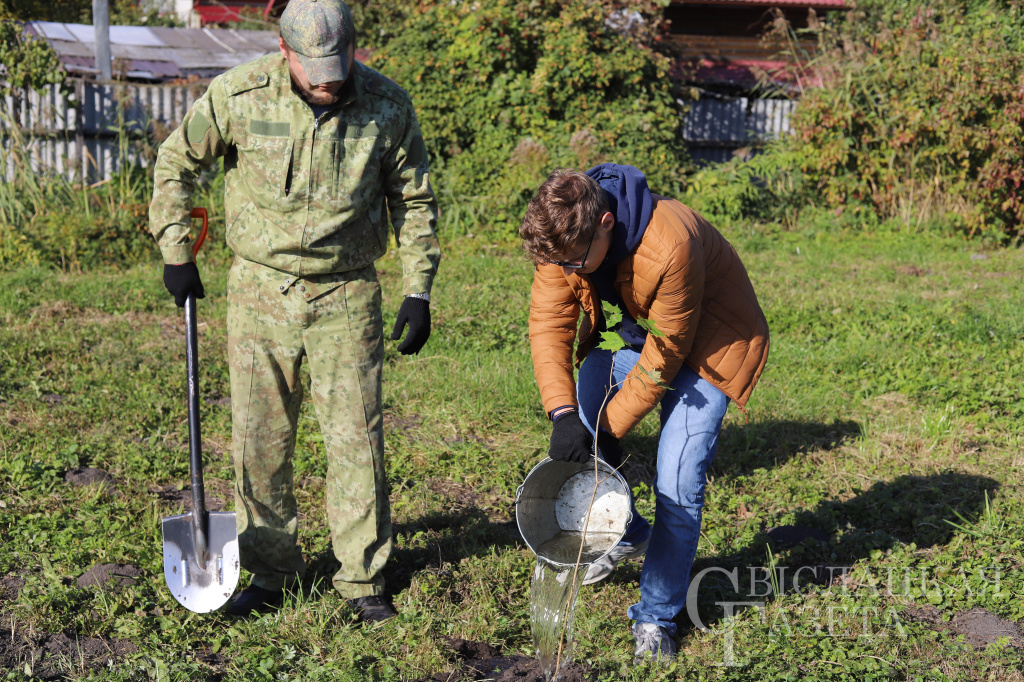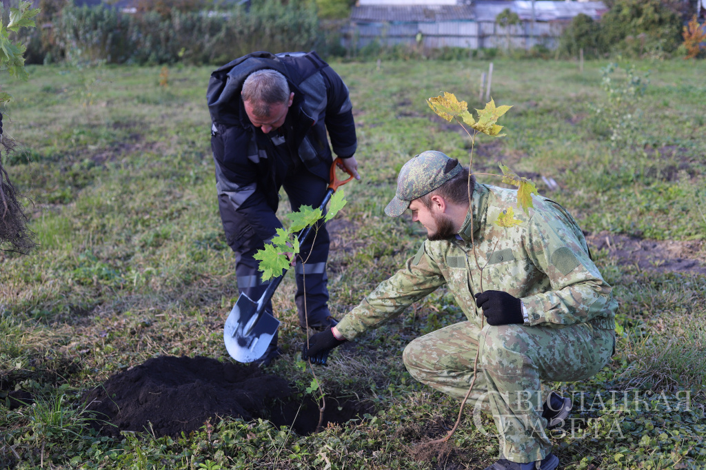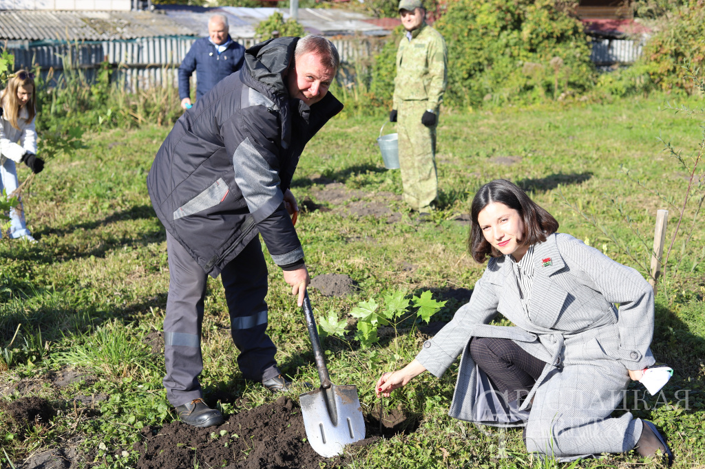 Совместными усилиями в припарковой зоне в Свислочи было посажено 60 саженцев березы, липы и клена.