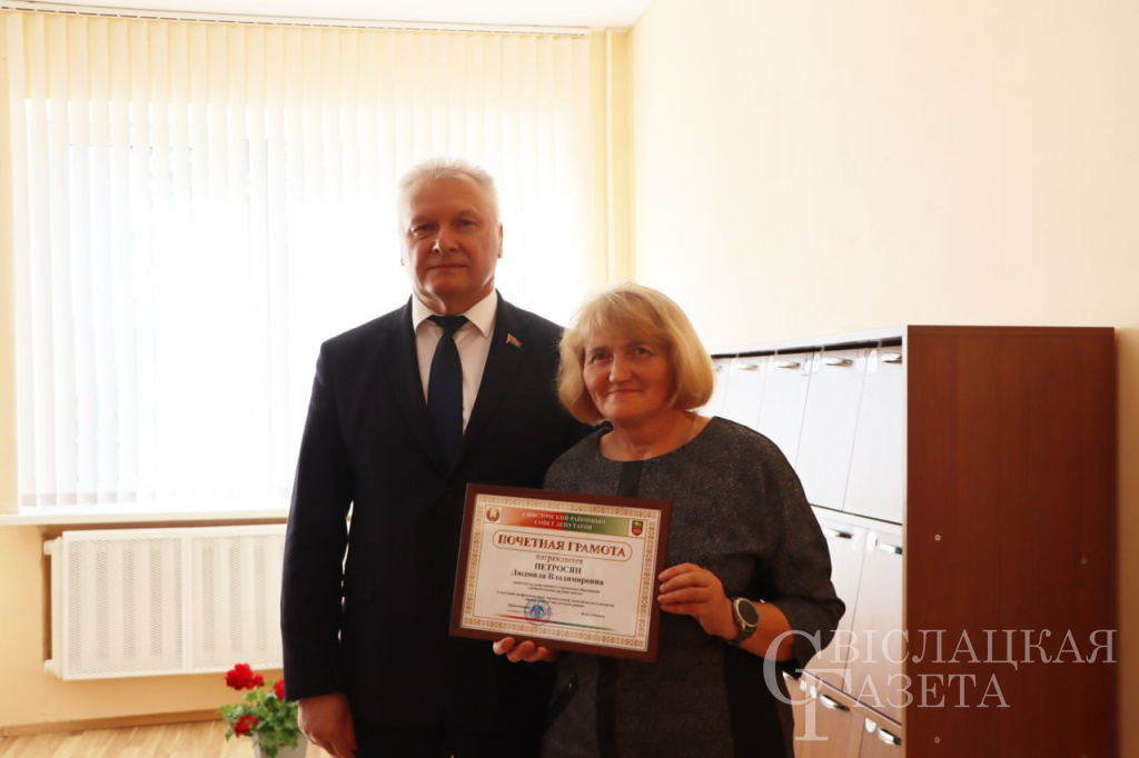 Приятным моментом сессии стало награждение. От районного Совета депутатов Почетную грамоту вручили директору Добровольской СШ Людмиле Петросян, Благодарственное письмо – заведующему ДС № 2 г. Свислочь Елене Качко.