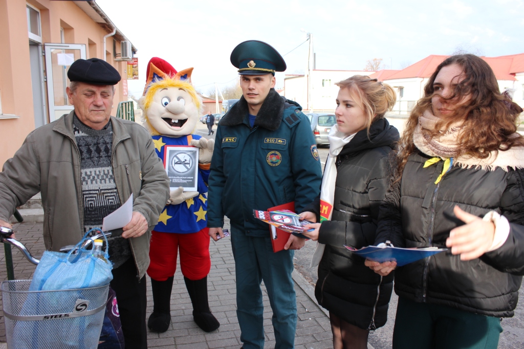 Старт акции был дан 12 ноября. Спасатели вместе со своими помощниками – активистами районного отделения Белорусской молодежной общественной организации юных спасателей-пожарных, ОО БРСМ, работниками культуры напомнили жителям района об опасности, которую таит в себя «пьяная сигарета», вручили профилактические буклеты. Юные спасатели на автобусных остановках, АЗС, на информационных стендах автомагазинов разместили листовки.