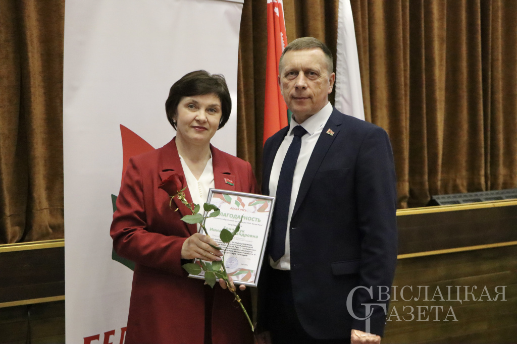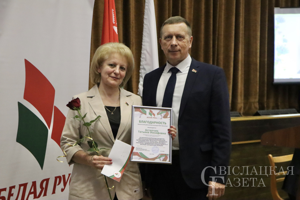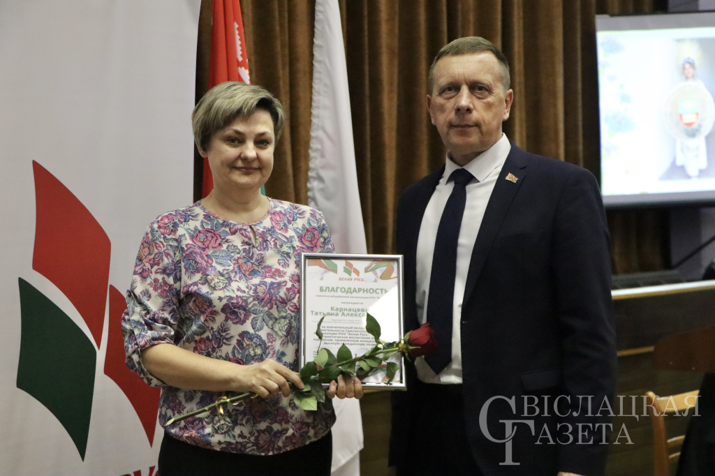 За значительный вклад в развитие деятельности РОО «Белая Русь» были отмечены председатель первичной организации Порозовской СШ Татьяна Астапчик, председатель первичной организации сектора культуры райисполкома Татьяна Карнацевич, также активиста первичной организации СШ № 2 имени Н. П. Массонова Инна Гончарук.