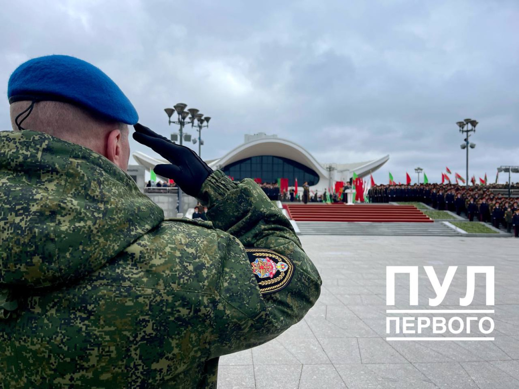 В ответ прозвучало троекратное "Клянемся!" от военнослужащих, после чего оркестр исполнил Государственный гимн Беларуси и были произведены залпы артиллерийского салюта.
