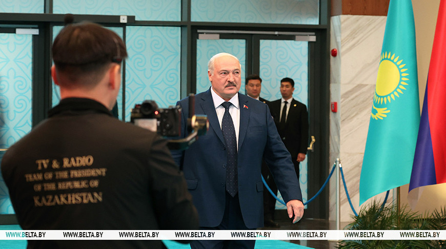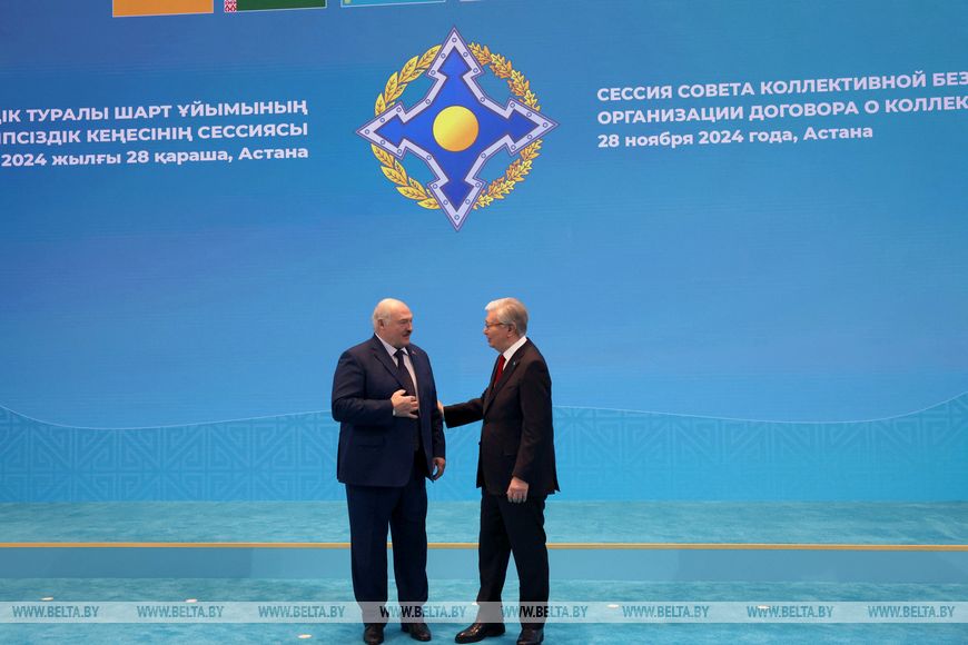 Мероприятие проводится во Дворце Независимости. На входе Александра Лукашенко приветствовал хозяин саммита - Президент Казахстана Касым-Жомарт Токаев. В нынешнем году Казахстан председательствует в ОДКБ.