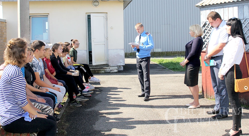 Руководитель группы первый заместитель председателя – начальник управления сельского хозяйства и продовольствия райисполкома Андрей Грицкевич, главный специалист отдела идеологической работы, культуры и по делам молодежи райисполкома Татьяна Почебут, старший инспектор ИДН Свислочского РОВД Дмитрий Зотов рассказали студотрядовцам о защите прав материнства и детства и профилактике наркомании в Республике Беларусь.