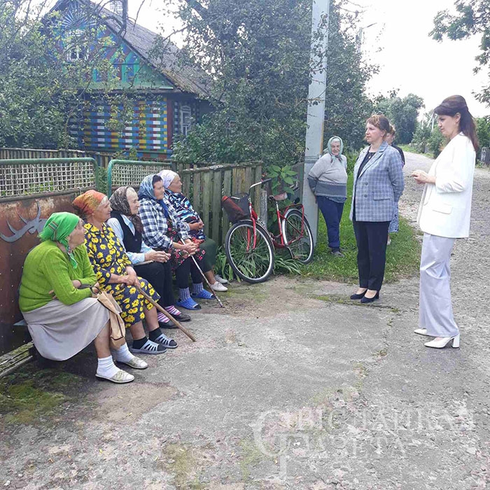 Продолжаются встречи представителей власти с жителями населенных пунктов района. Сегодня заместитель председателя райисполкома Оксана Шейко узнавала, какие вопросы волнуют жителей деревни Большие Михалки. На встрече присутствовали также председатель Вердомичского сельсовета Елена Соловей и управляющий делами сельисполкома Татьяна Курбат.