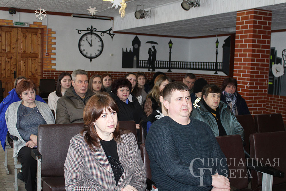 С трудовым коллективом ОАО «Акр-Агро» состоялась встреча в Пацуевском секторе культуры и досуга. Тема разговора – предстоящие выборы. Председатель Свислочского районного Совета депутатов Виктор Субботка и заведующий сектором идеологической работы и по делам молодежи райисполкома Ирина Павлюченя прошлись по основным моментам, которые касались подготовки и проведения выборов.