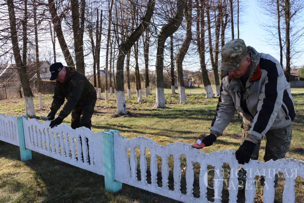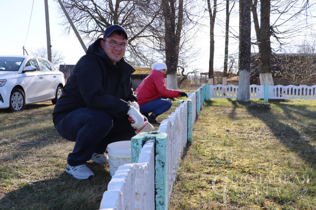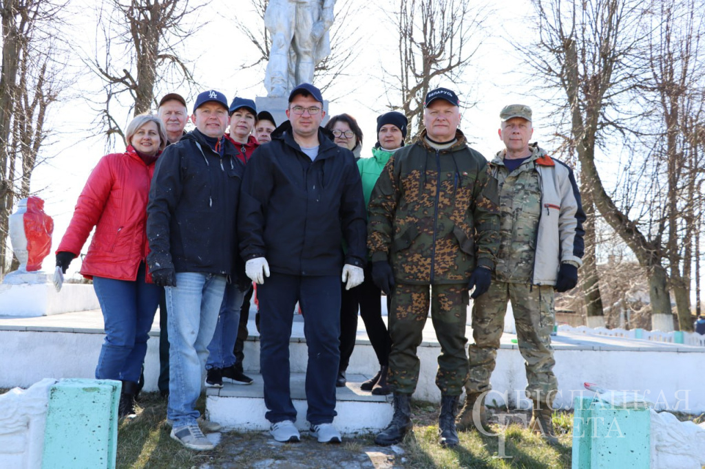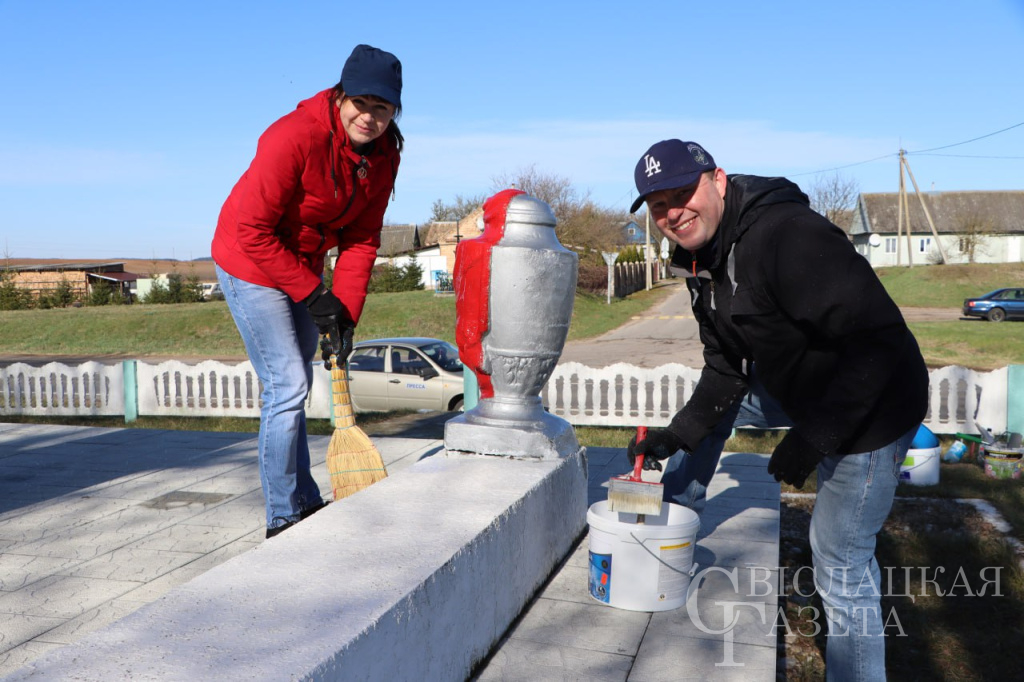 Одни счищали мох с ограждения вокруг памятника, чтобы лучше взялась краска, другие красили памятник и элементы, бордюры, убирали сухую траву. Работа проведена большая. Она важна особенно в Год 80-летия Великой Победы.