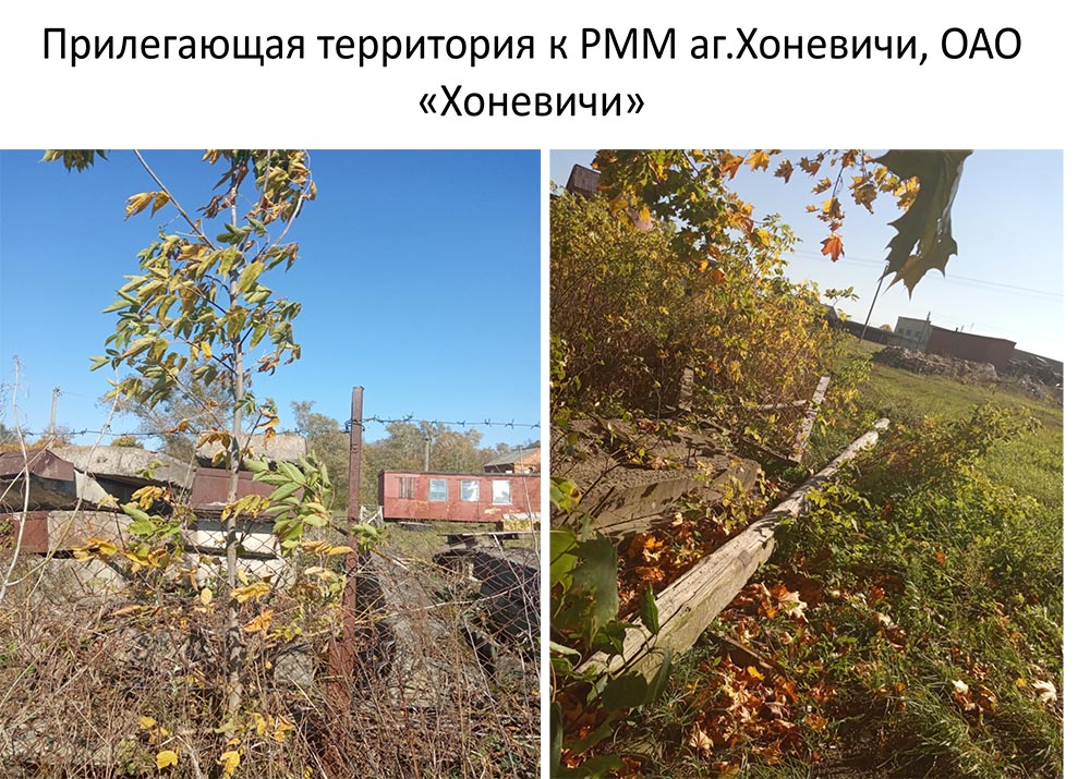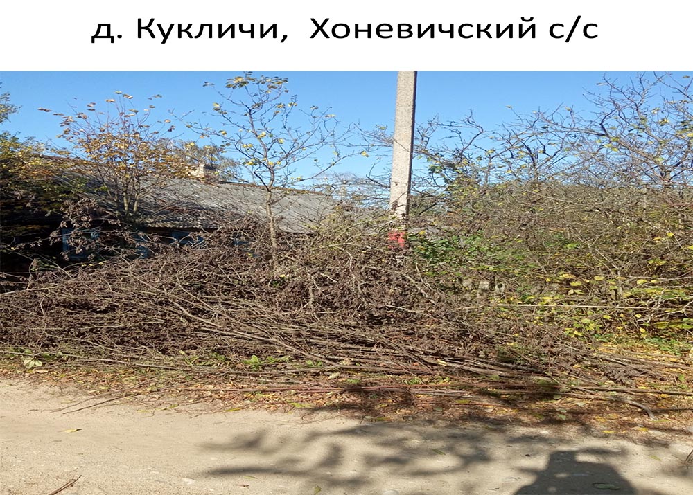 Проведенный очередной мониторинг показал, что руководители организаций и сельхозпредприятий зачастую не уделяют должного внимания наведению порядка на своих территориях. Так, вызвало бурю негодования содержание территории возле бывшего столярного цеха в аг. Корнади. Территория захламлена обломками крыши и стен разваливающегося здания, везде разбросаны сухие ветки и мусор, не произведен покос сорной растительности. Не лучшим образом содержится прилегающая к ремонтно-механическим мастерским территория в аг. Хоневичи (захламлена строительными блоками и остатками сломанного ограждения, требует срочного покоса растительности). Свалки бытового мусора и сухих веток обнаружены на контейнерной площадке по ул. Молодежной в аг. Великое Село. Хочется отметить, что в этом же населенном пункте так и не убраны свалки металлолома и колес от сельскохозяйственной техники на территории ремонтно-механических мастерских. Так и не произведен покос сорной растительности на территории водозаборной скважины и молочно-товарной фермы «Вердомичи», возле склада в пос. Островский, складского помещения, водозаборной башни и бывшей бани в д. Манчицы. Остался нерешенным вопрос с покосом растительности и захламленностью сухими ветками от деревьев и кустарников на землях общего пользования в аг. Доброволе. На землях общего пользования в Кукличах также обнаружены свалки сухих веток и сломанных деревьев.