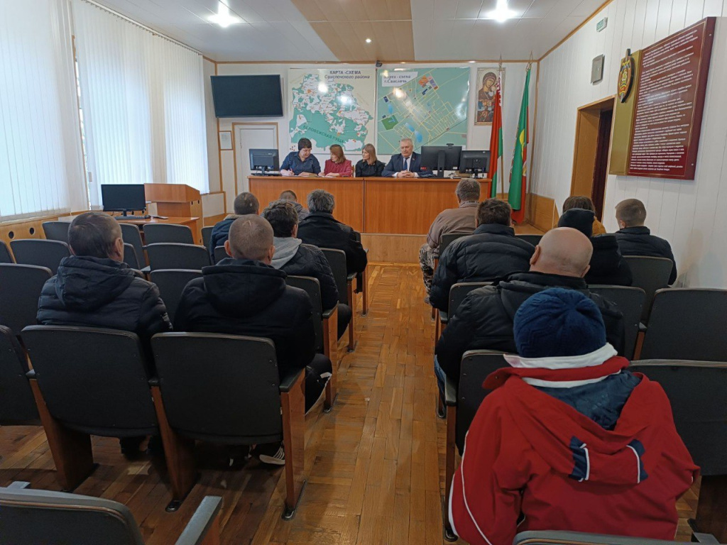 В рамках проведения с 6 по 20 февраля комплекса профилактических мероприятий с лицами, имеющими судимость, не занятыми трудом без уважительных причин, состоящими на учетах в уголовно-исполнительной инспекции, а также в ООПП за совершение домашнего насилия, 14 февраля в зале отдела внутренних дел Свислочского райисполкома совместно с управлением по труду, занятости и социальной защите Свислочского райисполкома, председателем постоянно действующей комиссии по координации работы по содействию занятости населения Свислочского райисполкома Виктором Субботкой состоялось групповое воспитательно-профилактическое мероприятие по трудоустройству лиц, состоящих на учетах в уголовно-исполнительной инспекции Свислочского РОВД.