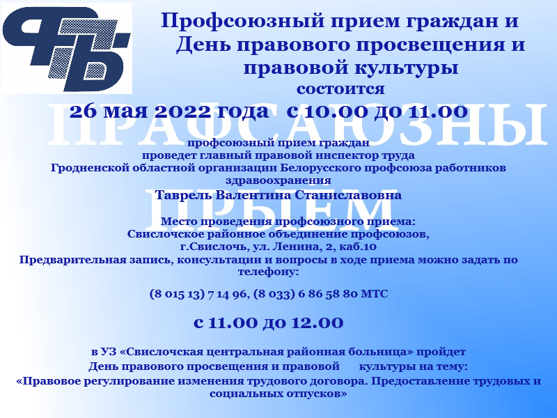26 мая пройдет профсоюзный правовой прием граждан