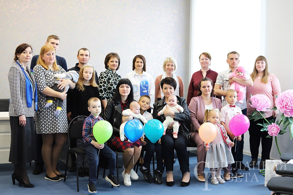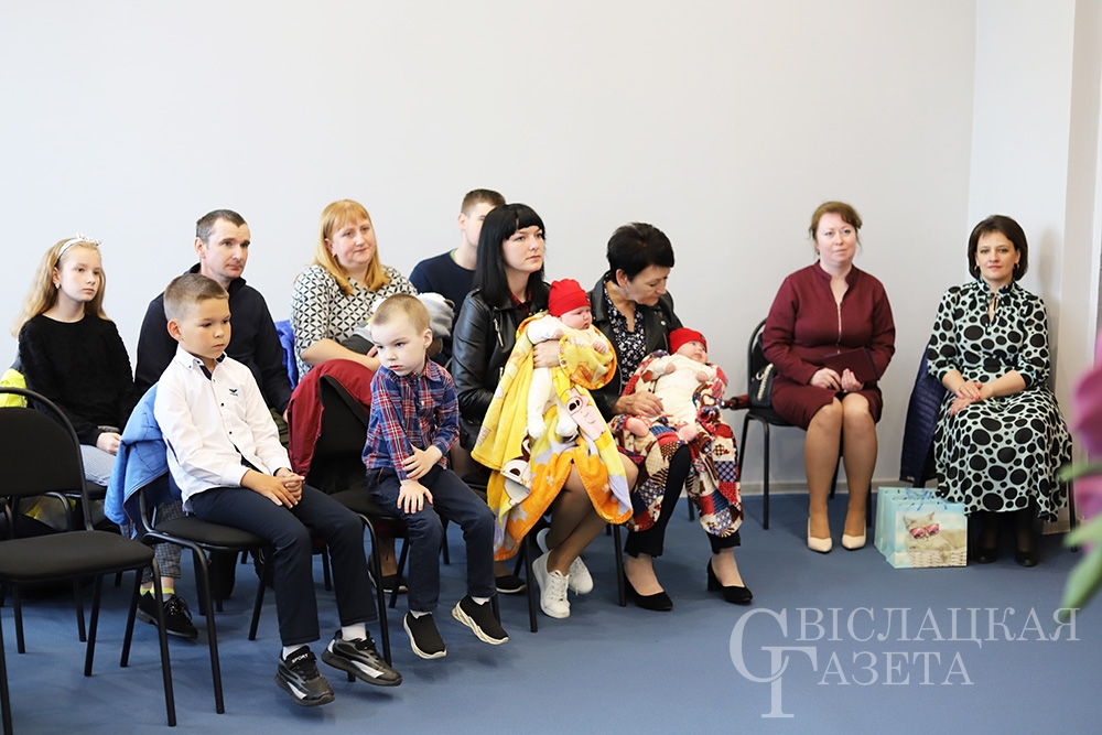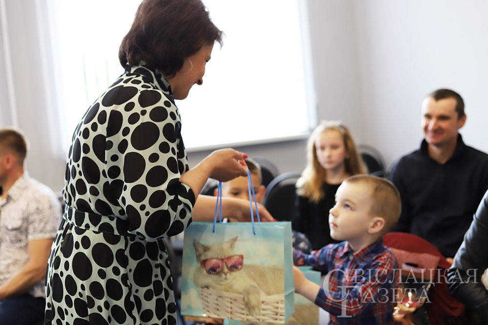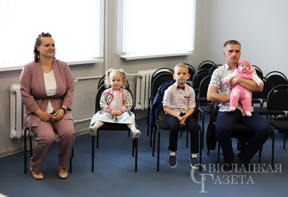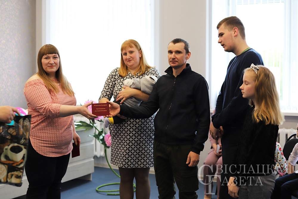 Традиционно на мероприятие были приглашены пары, у которых недавно появился третий ребенок. Юрий и Светлана Лукашевичи растят троих деток – Глеба, Милану и Марию. Всей семьей поучаствовали в акции Андрей и Ольга Дингилевские, взяв с собой Илью, Ульяну и кроху Ярослава. А вот Александр и Дарья Капчинские воспитывают двух сыночков и двух дочек. Тимофей и Игорь – старшие, двойняшки Мария и Александрия родились в этом году. В торжественной обстановке эти замечательные свислочские семейства принимали удостоверения многодетных – документ, подтверждающий их новый статус.