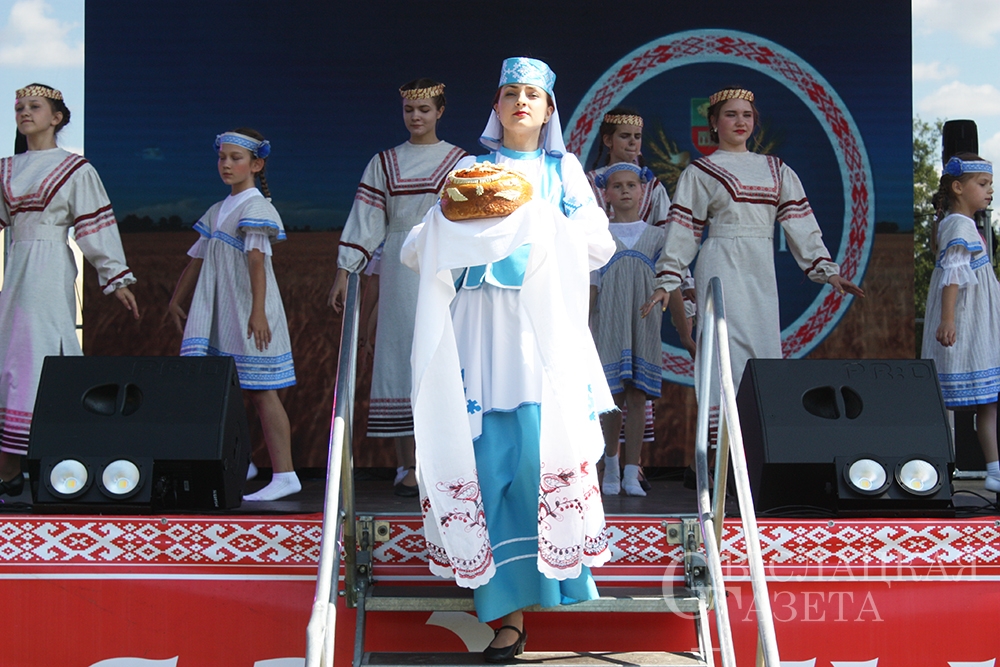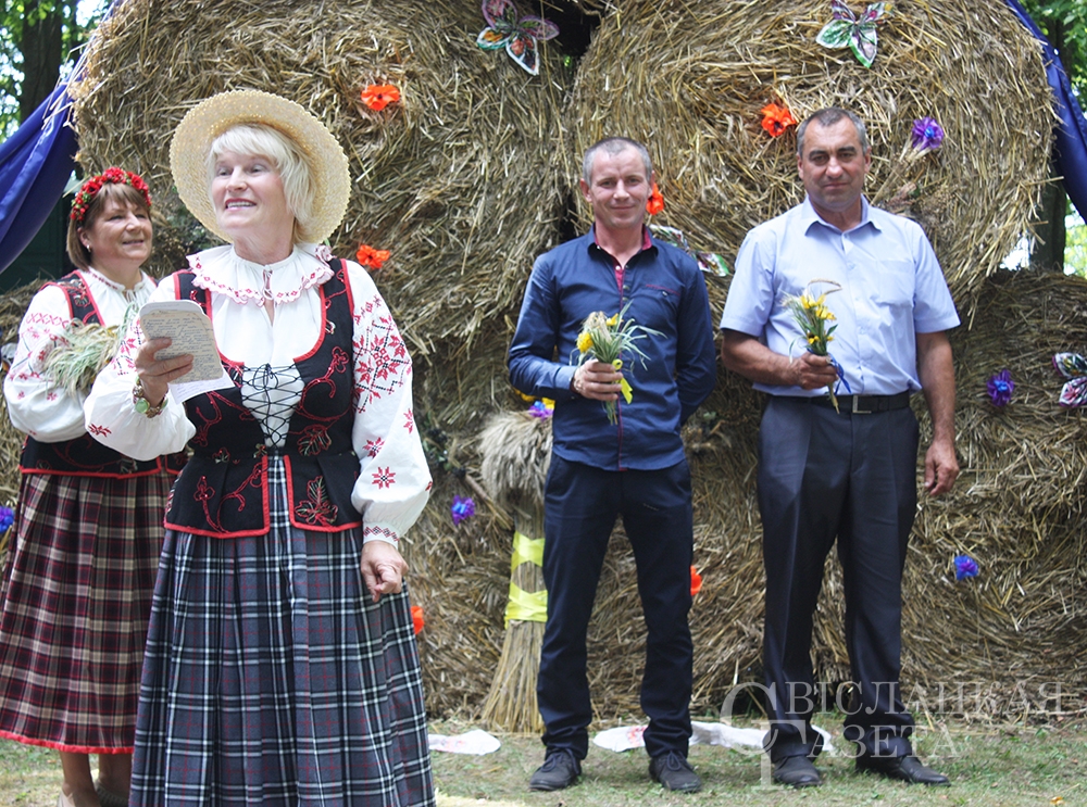 Цырымонія ўзнагароджання герояў жніва пачалася з уручэння каравая, прыгатаванага з мукі новага ўраджаю. З новым хлебам павіншаваў усіх прысутных і азнаёміў з вынікамі ўборачнай кампаніі першы намеснік старшыні – начальнік упраўлення сельскай гаспадаркі і харчавання райвыканкама Андрэй Грыцкевіч: