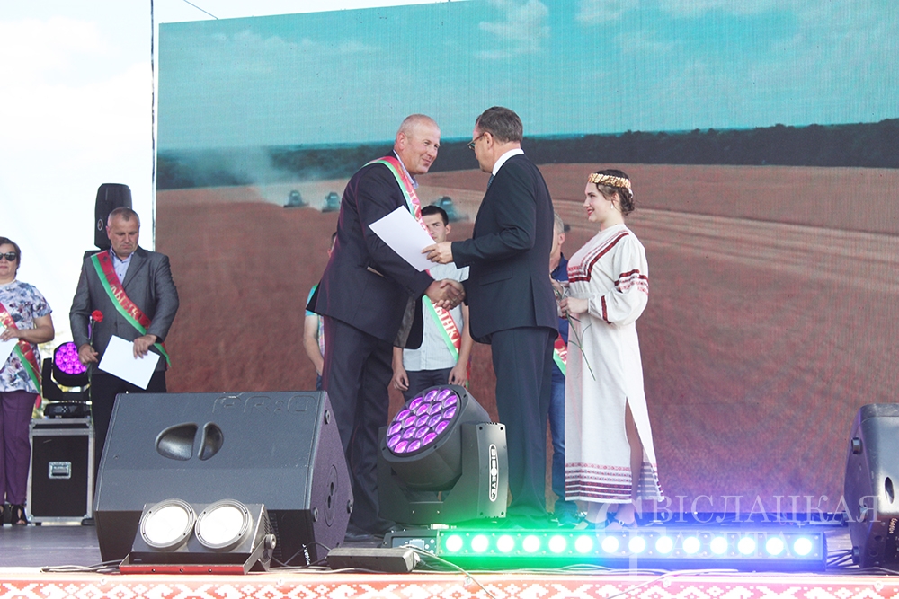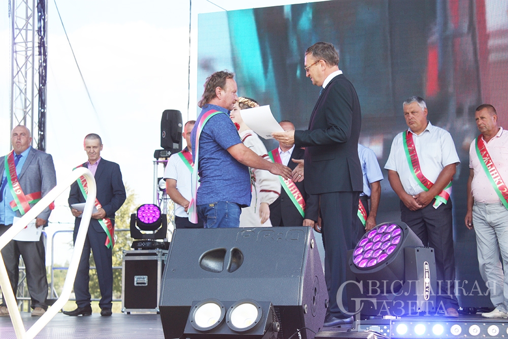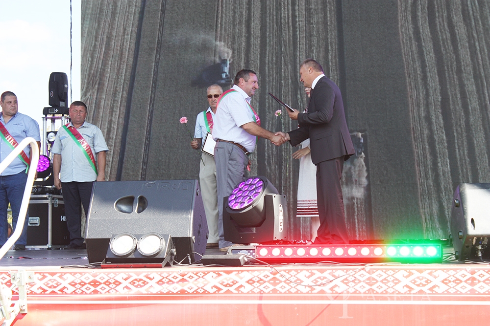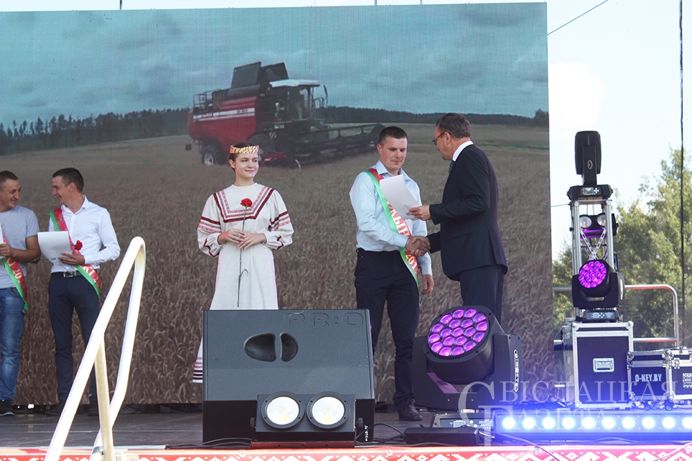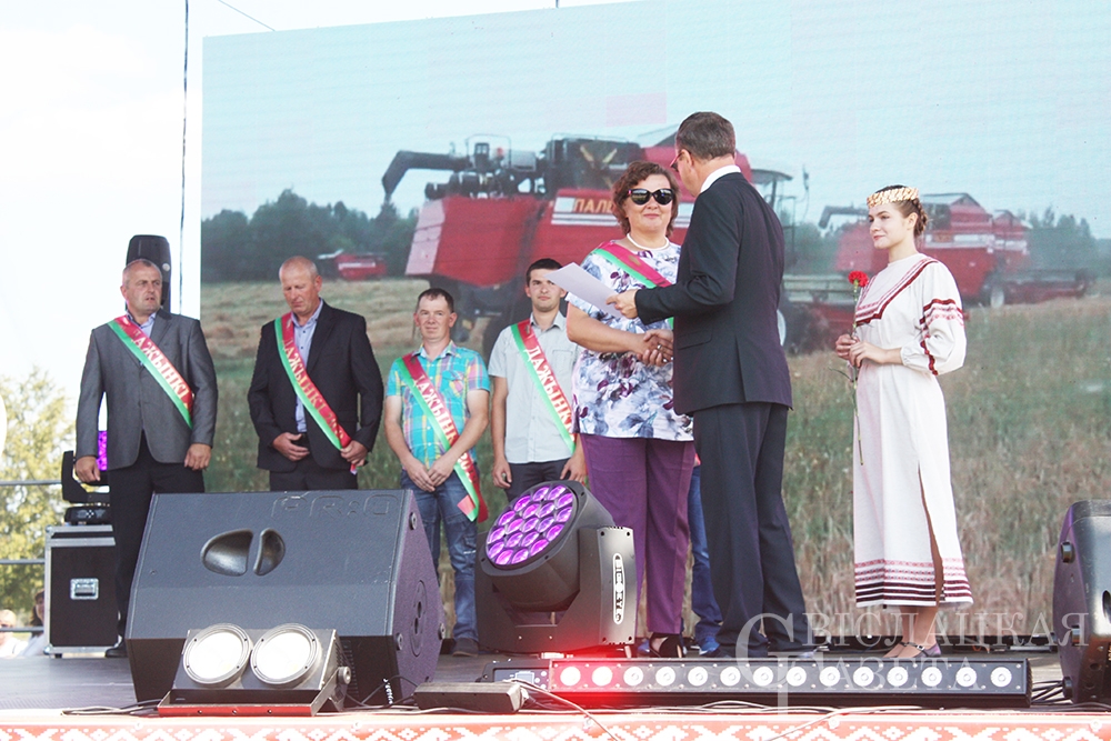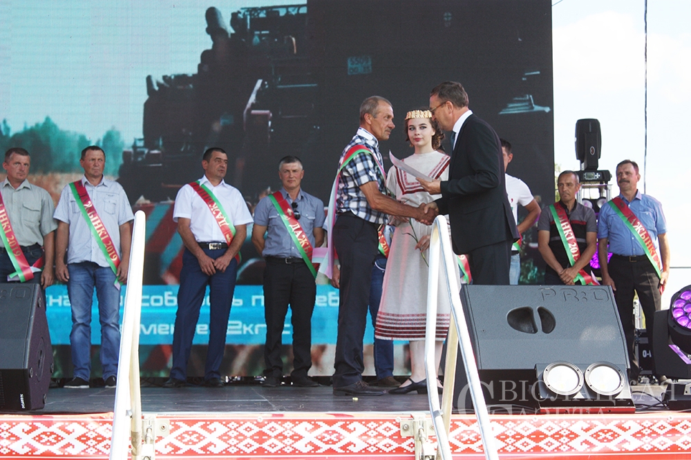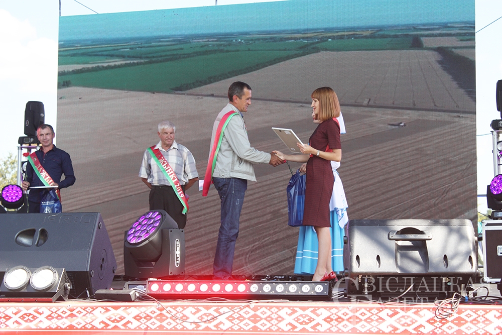 На сцэну галоўнай пляцоўкі гарадскога парку запрашаліся лепшыя з лепшых. Пад бурныя апладысменты гледачоў перадавікі ўборачнай кампаніі прымалі заслужаныя ўзнагароды за самаадданую працу.