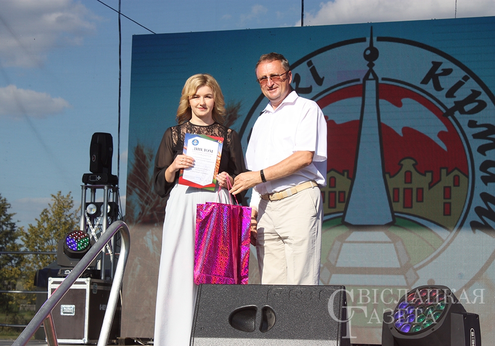Удзельнікі і пераможцы атрымалі свае ўзнагароды на галоўнай сцэне свята з рук старшыні райвыканкама Уладзіміра Анішчыка.