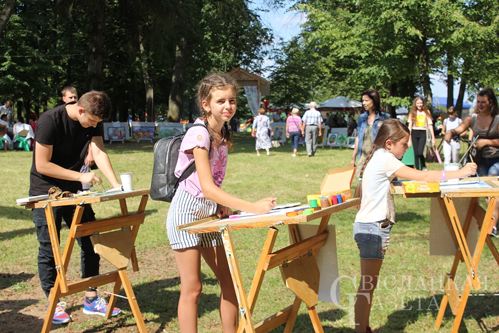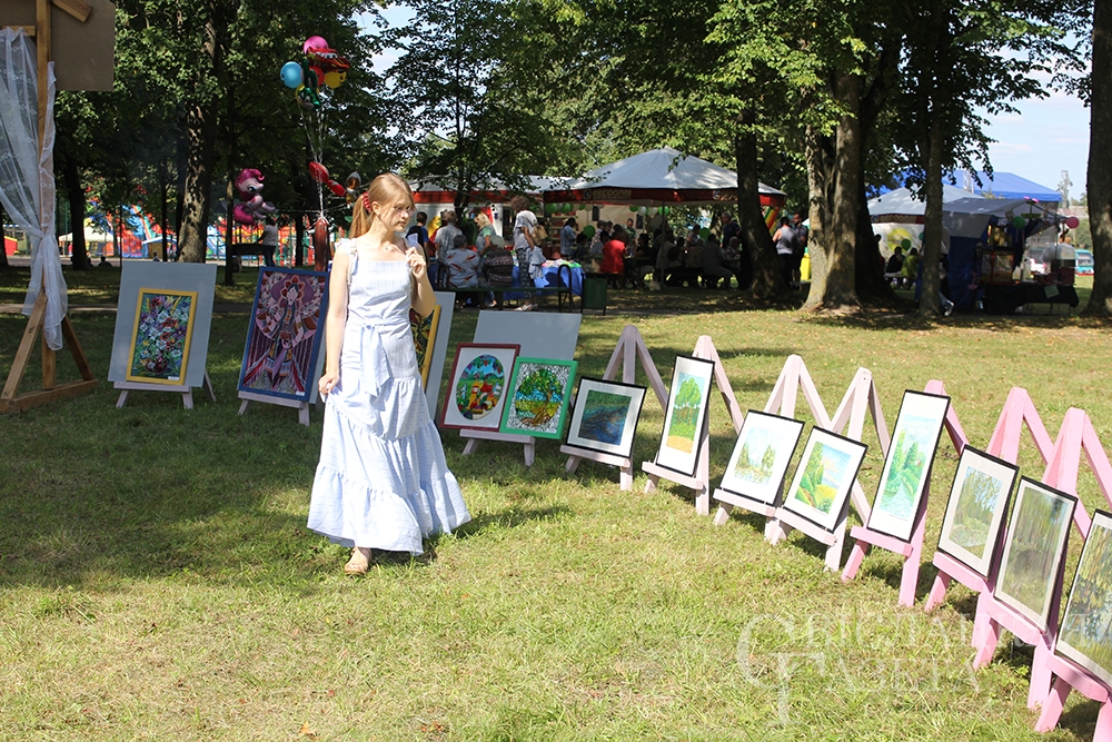 Большое разнообразие сувенирной продукции было представлено на торговых площадках белорусских производителей и ремесленников, которые приехали на праздник не только с разных уголков нашей области, но и республики. Отсюда, вот уж никак невозможно было уйти домой без памятного сувенира. Ведь глаза просто разбегались! Начиная от текстильных, деревянных изделий, изделий из камня и стекла, заканчивая милыми мягкими игрушками и именными кружками. А тот, кто мог затратить немного времени и проявить терпение, имел возможность вернуться с праздника со своим портретом, нарисованным художником.
