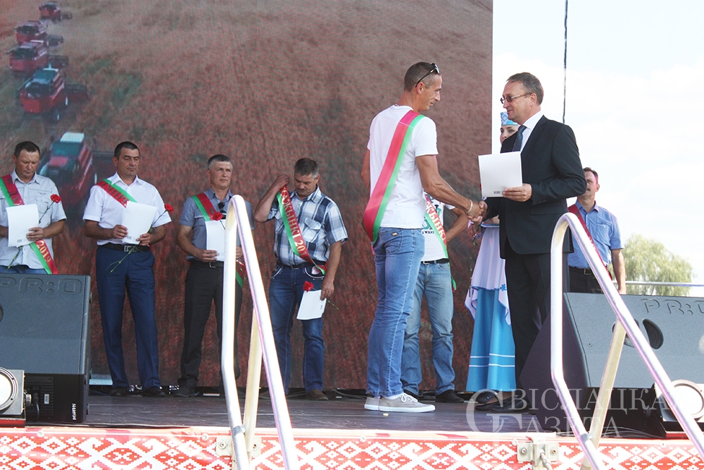 Андрэй Сяргеевіч падзякаваў усім удзельнікам жніва. Сярод іх механізатары і вадзіцелі, працаўнікі прамысловых прадпрыемстваў і абслугоўваючых арганізацый, работнікі Свіслацкай сельгастэхнікі, прадпрыемства меліяратыўных сістэм, а таксама прадстаўнікі гандлю, устаноў аховы здароўя, адукацыі і культуры.