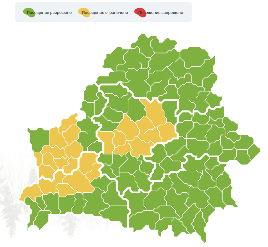 Оперативно отслеживать данные о введении мер ограничительного характера можно по размещенной на официальном сайте Минлесхоза карте запретов и ограничений на посещение лесов. Также информацию можно уточнить в местных райисполкомах и лесохозяйственных учреждениях. Интерактивная карта обновляется в онлайн-режиме, поэтому перед посещением лесных массивов стоит ознакомиться с актуальной ситуацией.