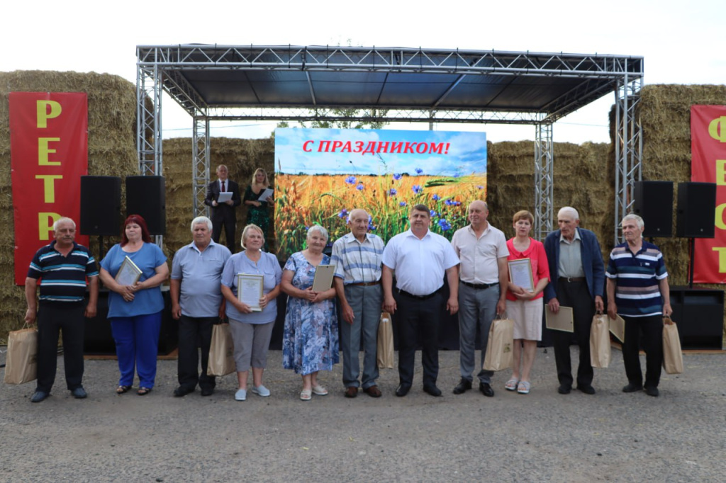 Состоялось чествование ветеранов труда, передовиков и трудовых династий. Поздравлениям, подаркам и наградам от сельхозпредприятия не было конца, равно как и благодарности за нелегкий труд. Ведь, как не раз прозвучало на этом празднике, все победы и успехи хозяйства – итог самоотверженности, заботы и ответственности каждого, кто здесь трудился и трудится.