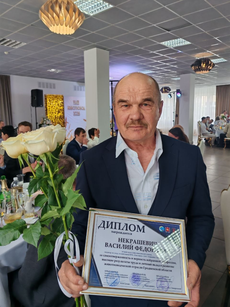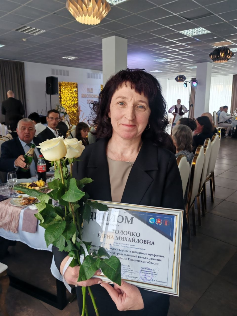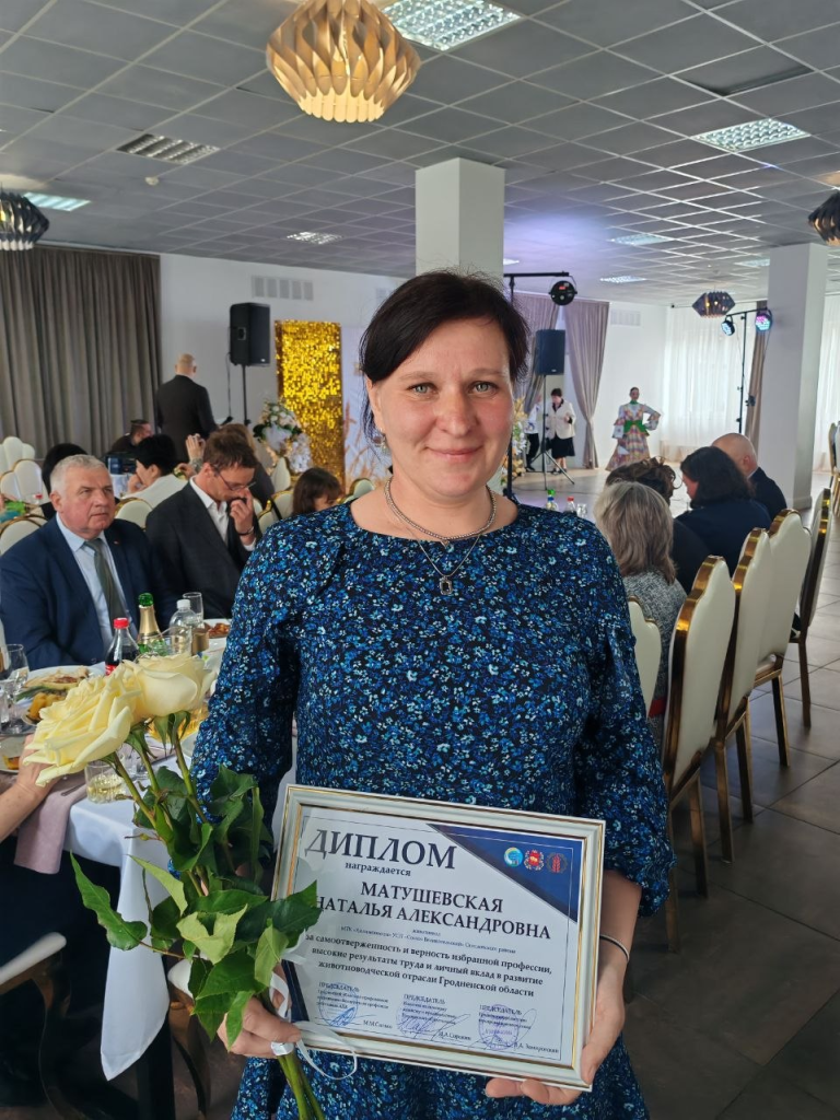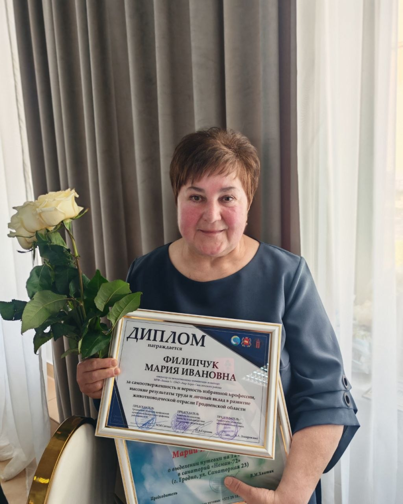 За самоотверженность и верность избранной профессии, высокие производственные показатели и личный вклад в развитие животноводческой отрасли Гродненщины награждены начальник участка в животноводстве МТФ «Качки» УП «ВМК-АГРО» Ирина Гутор, оператор машинного доения МТФ «Хоневичи» ОАО «Хоневичи» Елена Толочко, оператор по искусственному осеменению КРС МТФ «Занки-1» ОАО «Акр-Агро» Мария Филипчук, оператор по уходу за животными МТК «Олисевичи» ОАО «Хоневичи» Василий Некрашевич, животновод по выращиванию телят-молочников МТФ «Гринки» УП «ВМК-АГРО» Инна Кичкайло и животновод МТК «Хилимоновцы» УСП «Совхоз «Великосельский» Наталья Матушевская отмечены дипломами комитета по сельскому хозяйству и продовольствию Гродненского облисполкома, областной профсоюзной организации Белорусского профсоюза работников АПК и областного агропромышленного союза. Мария Филипчук дополнительно поощрена путевкой на оздоровление в санаторий «Неман».