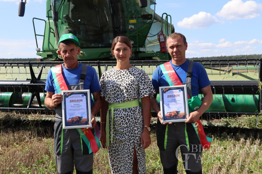 В составе экипажа, который стал победителем районного соревнования, как раз трудился один такой. Сергей Лях работает на железной дороге, а на жатве стал хорошим помощником комбайнеру Геннадию Измайлову. Передовики награждены дипломами районной организации Белорусского профсоюза работников АПК.