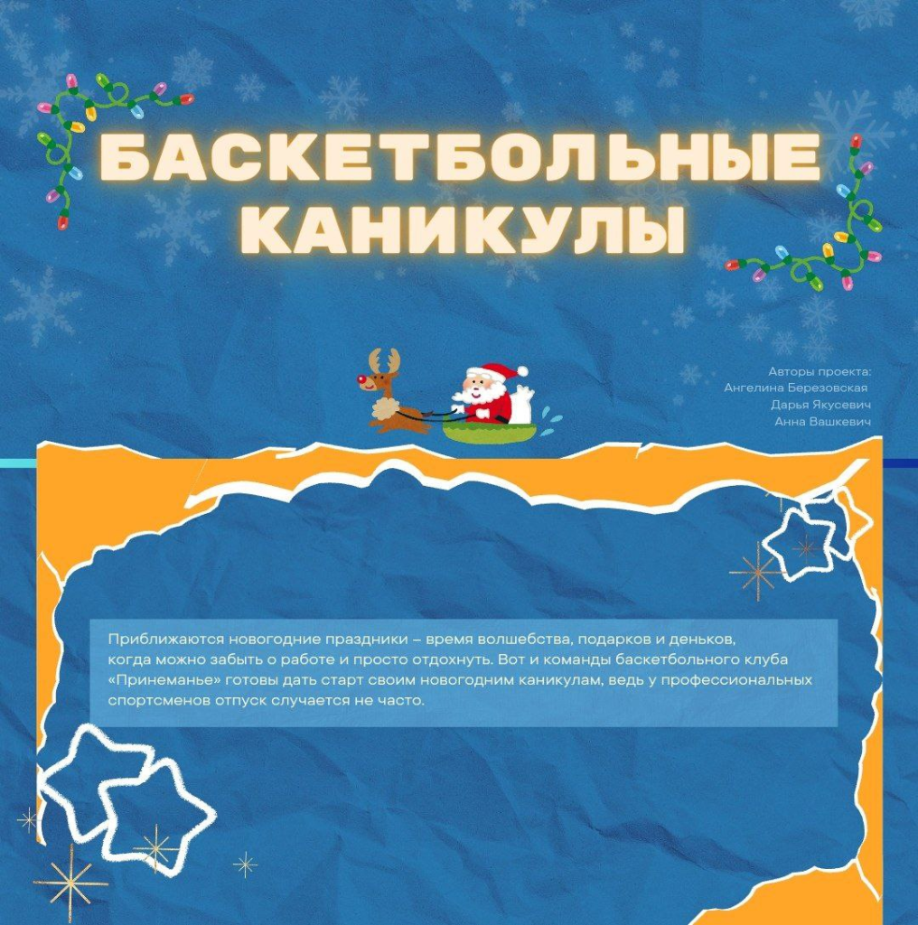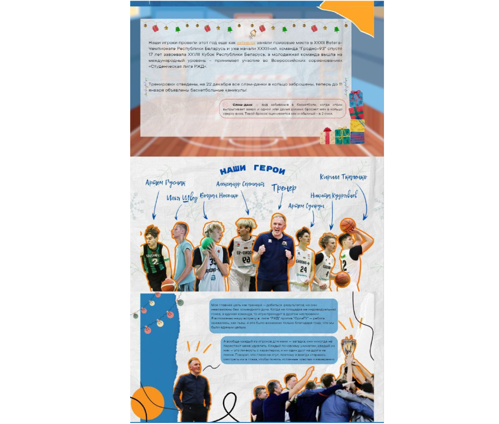 Случайно подсмотрели, какой крутой новогодний проект сделали наши будущие коллеги – студенты четвертого курса специальности «Информация и коммуникация» ГрГУ имени Янки Купалы о гродненской баскетбольной команде и не могли с вами не поделиться, настолько он яркий и классный.