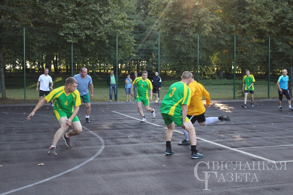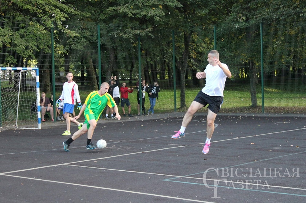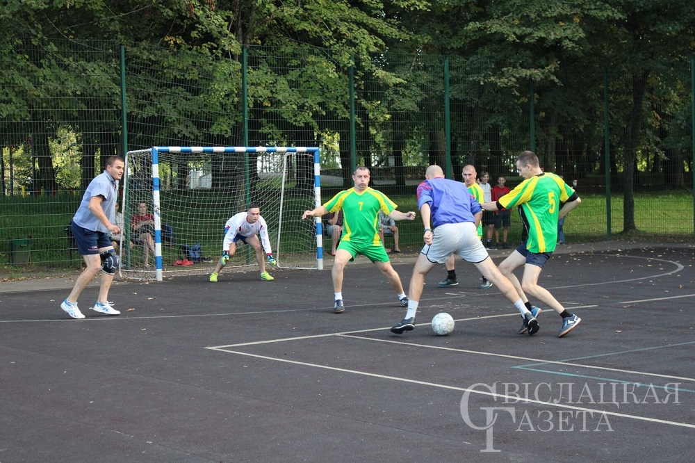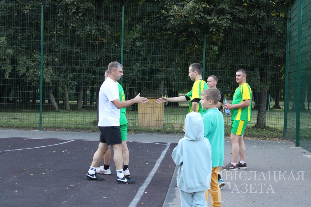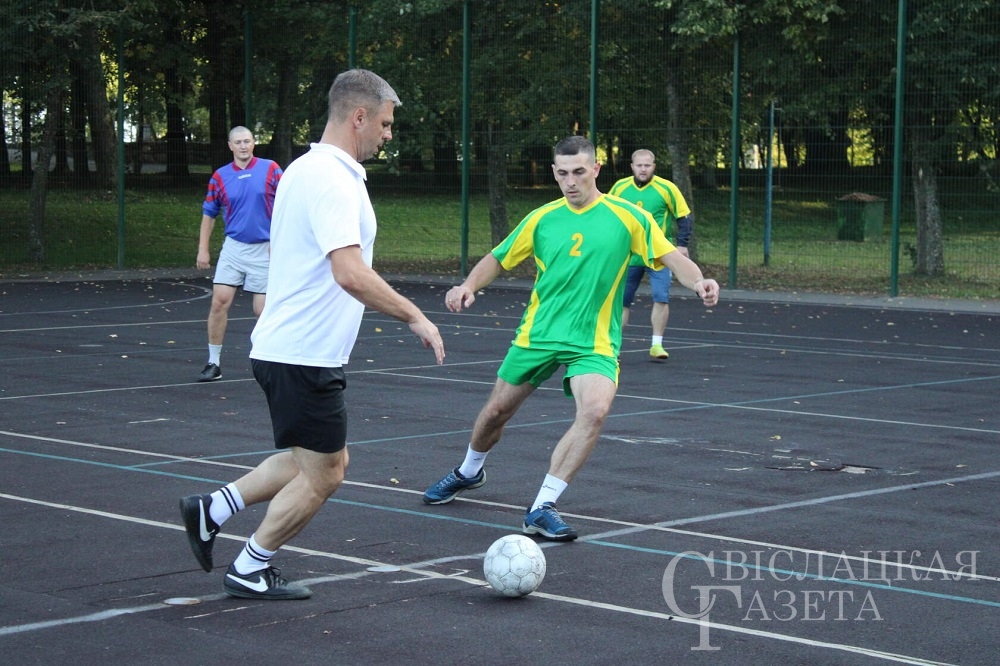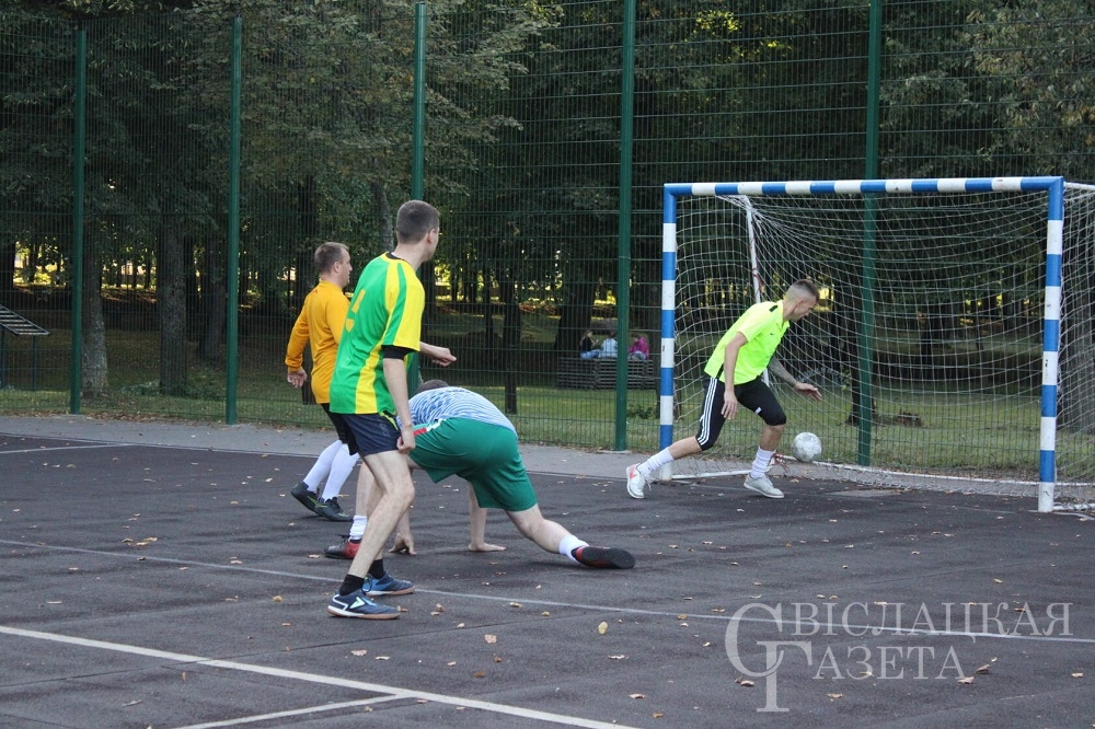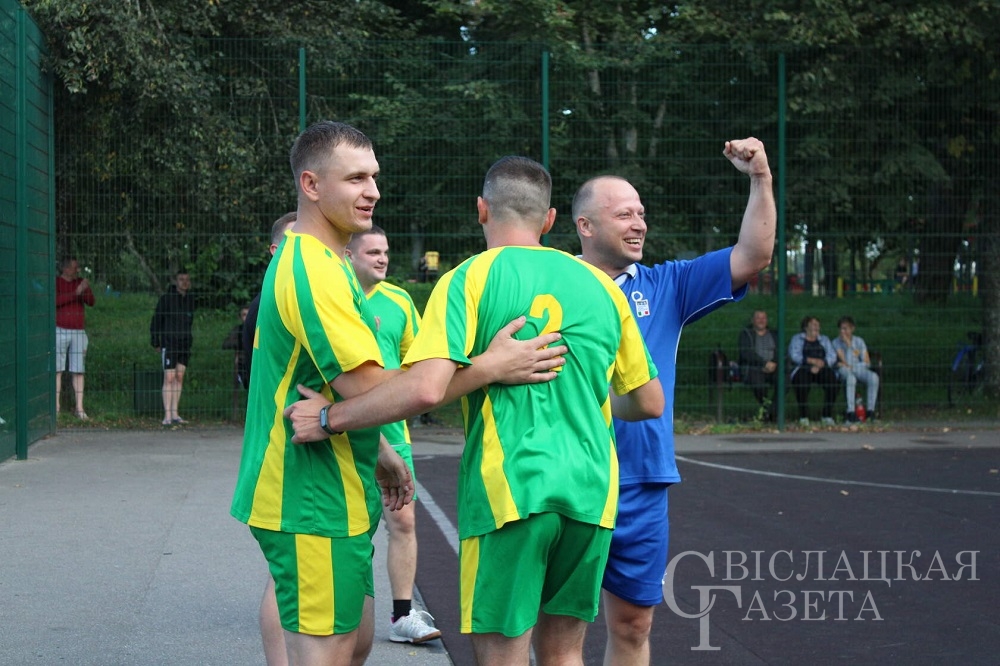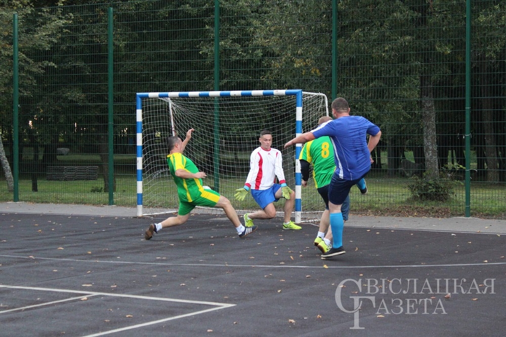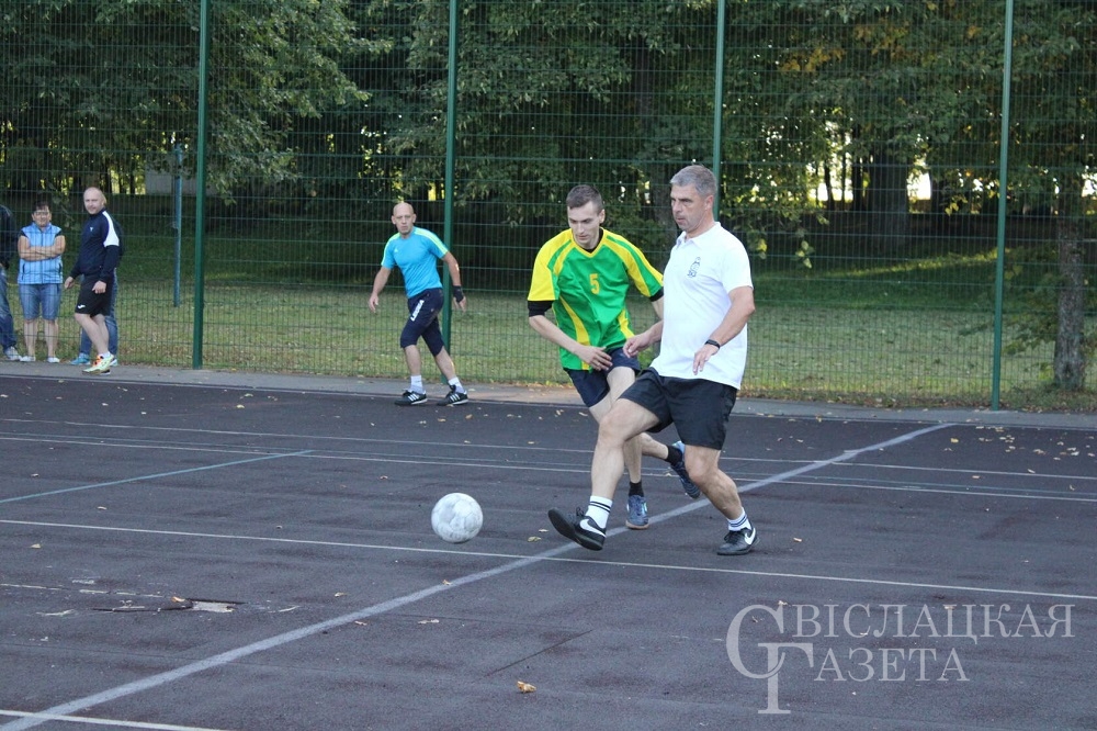 На площадке встретились команды райисполкома и РОВД – фавориты этого сезона: у каждой в копилке по две выигранные игры. Таким был расклад до этого матча. Как же сыграют сильные соперники? Игра, надо сказать, выдалась напряженной и интересной. Как для самих футболистов, так и для болельщиков. В первом тайме на пятой минуте команда РОВД отправила первый мяч в ворота соперника. На девятой минуте райисполком сравнял счет.