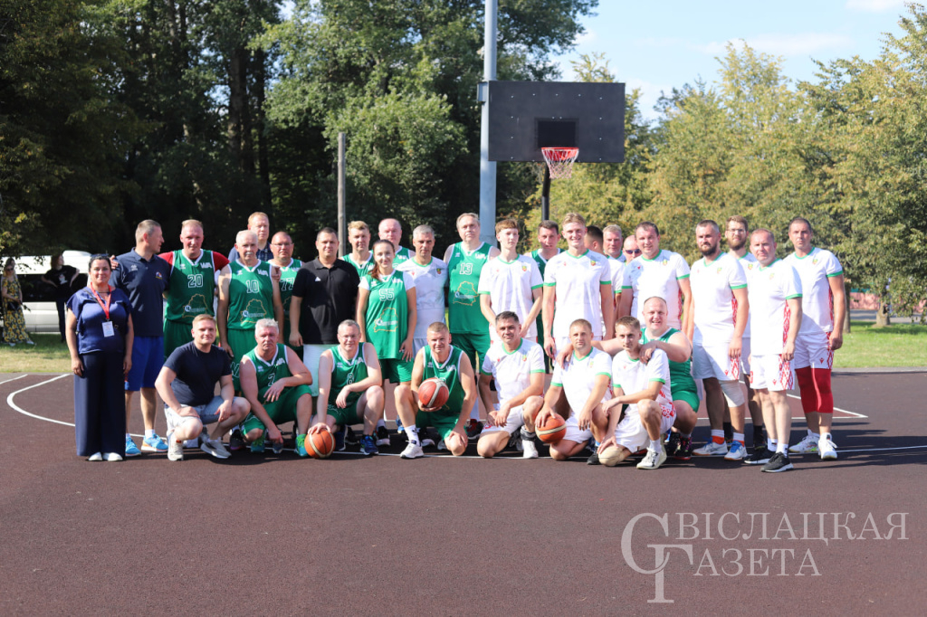 В городском парке прошел товарищеский матч по баскетболу между командами председателя Гродненского облисполкома Владимира Караника и председателя Свислочского райисполкома Александра Версоцкого.