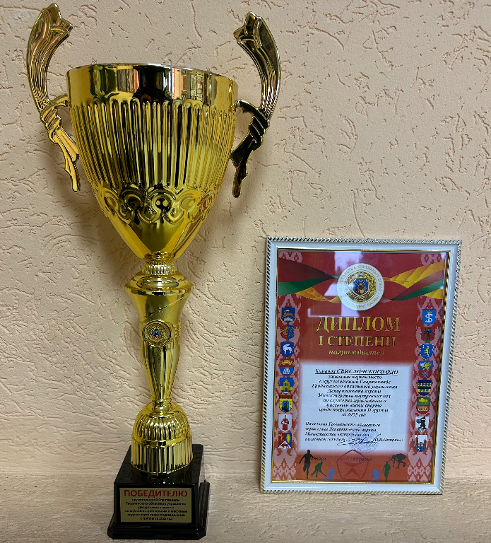 Пополнение в копилке спортивных наград коллектива Свислочского отдела охраны – кубок победителя и Диплом I степени в круглогодичной спартакиаде Гродненского областного управления Департамента охраны Министерства внутренних дел по служебно-прикладным и массовым видам спорта среди подразделений II группы.