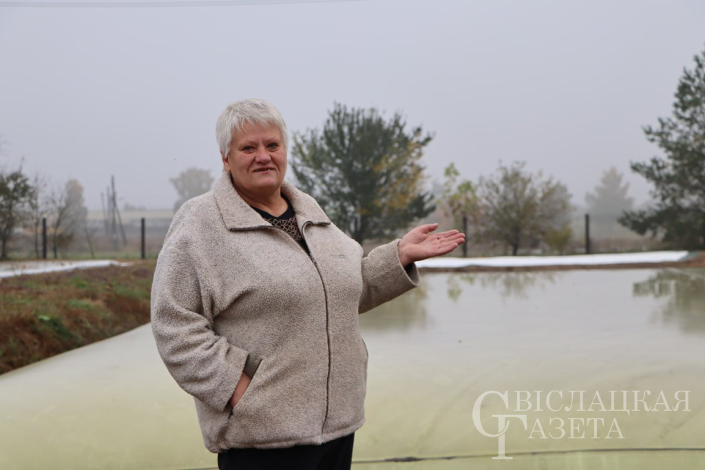 Лариса Уланович с удовольствием проводит экскурсию по своим владениям. Два огромных склада, в которых хранятся сыпучие удобрения, были построены давно. Жидкие хранились в цистернах, сейчас – в специальных емкостях. Пока они пусты, похожи на обычную пленку, расстеленную на траве. Когда заполняются, превращаются в большой надувной «матрас». Удобство такого хранения жидких удобрений оценили в хозяйстве три года назад. Тогда появилась первая мягкая емкость вместимостью в 360 тонн. В этом году приобрели еще несколько. В общей сложности в них теперь можно хранить 1700 тонн минеральных удобрений.